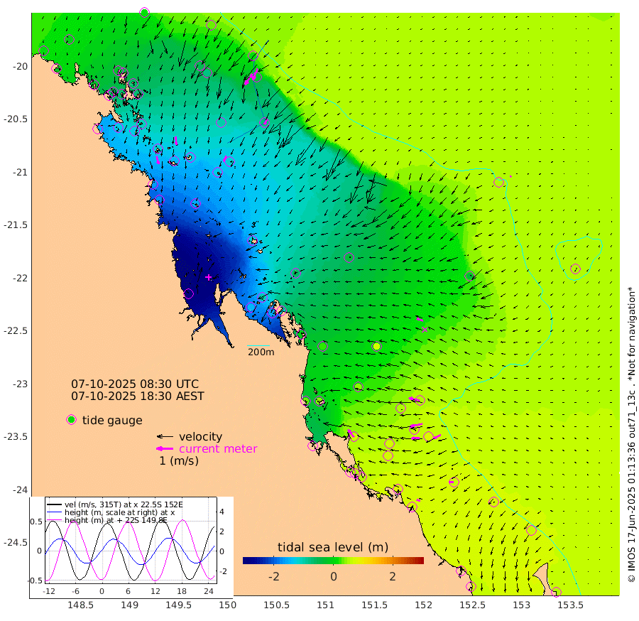 48cm/s 166T +10cm/s rms + 2cm/s 5T. Brampton I 18m 50cm/s 175T +9cm/s rms + 6cm/s 66T. Wigton I 38m 36cm/s -154T +7cm/s rms + 8cm/s 141T. Tern I 47m 75cm/s -157T +7cm/s rms + 12cm/s 54T. N Bugatti Rf 64m 81cm/s -148T +3cm/s rms + 13cm/s 178T. W Bugatti Rf 70m 37cm/s -156T +3cm/s rms + 3cm/s -130T. Creal Rf 69m 68cm/s -77T +7cm/s rms + 4cm/s 2T. North Rf 62m 58cm/s -38T +9cm/s rms + 2cm/s -56T. Cape Capricorn 26m 23cm/s -94T +5cm/s rms + 3cm/s 166T. L Musgrave I 42m 21cm/s -71T +9cm/s rms + 1cm/s -142T. Round Hill Hd 26m 7cm/s -135T +41cm/s rms + 48cm/s 116T. GBRELR 305m 41cm/s -73T +7cm/s rms + 6cm/s 123T. GBRCCH 92m 78cm/s -103T +8cm/s rms + 3cm/s -33T. GBRHIN 45m 48cm/s -94T +4cm/s rms + 2cm/s 41T. GBRHIS 46m 45cm/s -117T +16cm/s rms + 4cm/s -22T. GBROTE 59m -36cm Bell Cay -4cm Holbourne I -117cm Tern I -26cm Bugatti Rf -69cm Creal Rf 6cm White Tip I 56cm North Rf 66cm Rundle I 63cm L Musgrave I 53cm Saumarez Reef 16cm Kennedy Reef 33cm Unnamed Reef No. 2 1cm Abbot Point -14cm Bowen -50cm Tideway Reef -28cm Hayman Island -76cm Square Reef -26cm Double Bay -54cm Molle Island -69cm Cid Harbour -38cm Hook Island -70cm Border Island -75cm Haslewood Island -67cm Shute Harbour -110cm Thomas Island -99cm Credlin Reef -124cm East Repulse Island -129cm Blacksmith Island -148cm Laguna Quays -120cm Carlisle Island (Off) -144cm St. Bees Island -130cm Scawfell Island -123cm Penrith Island -165cm Mackay Outer Harbour -173cm Hay Point -158cm Prudhoe Island -116cm Middle Island (Percy Isles) -28cm Gannet Cay 50cm Elusive Reef -312cm Mcewin Islet -96cm Mumford Island -146cm Osborn Island -155cm Marquis Island -126cm Reef Point -64cm High Peak Island -7cm Port Clinton 20cm Peaked Island 69cm Karamea Bank 41cm Johnson Patch - NW 36cm Rosslyn Bay 45cm Middle Island (Keppel Isles) 21cm Port Alma 64cm Heron Island 77cm One Tree Islet 68cm Polmaise Reef 49cm Tryon Island 73cm Rock Cod Shoal 53cm Gatcombe Head 39cm Gladstone 54cm South Trees (Storm Surge) 80cm Clews Point 68cm Round Hill Head 66cm Lady Elliot Island 65cm Breaksea Spit 72cm Bundaberg (Burnett Heads) 74cm Elliot Heads 50cm Waddy Point (Fraser Island)