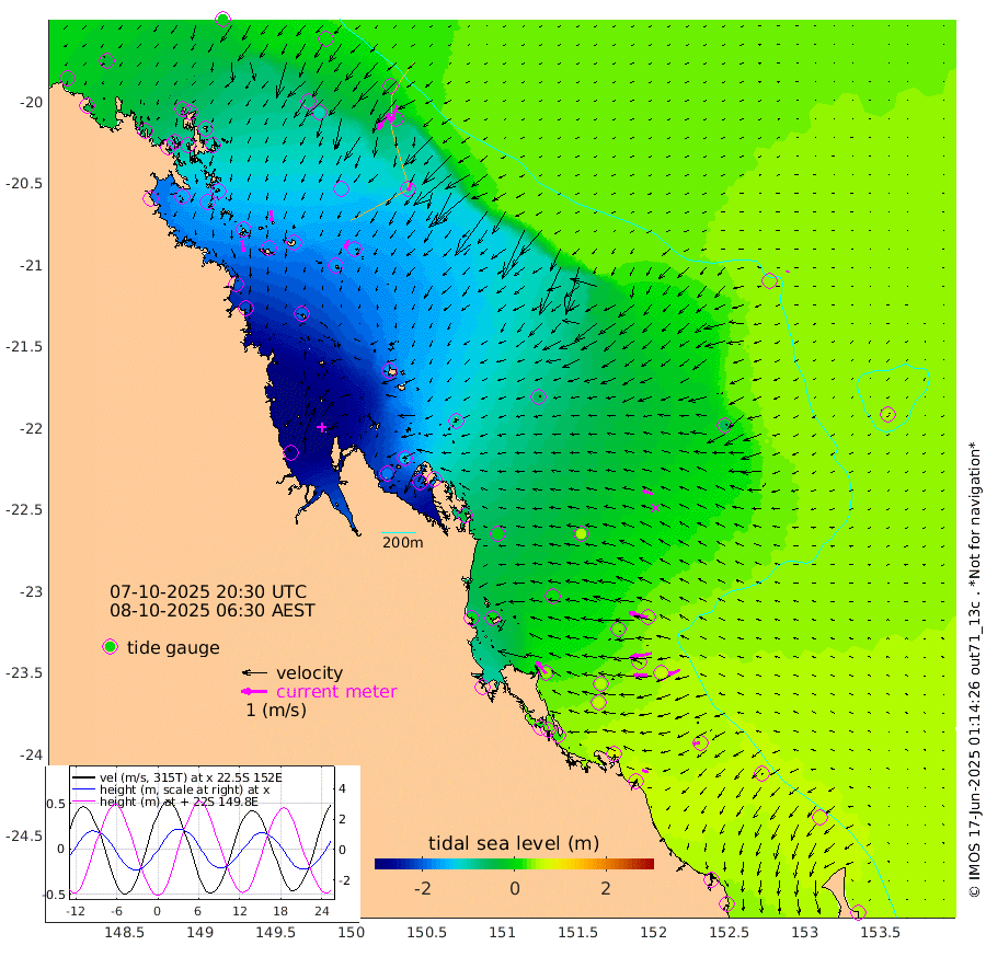 44cm/s 168T +10cm/s rms + 2cm/s 5T. Brampton I 18m 44cm/s 175T +9cm/s rms + 6cm/s 66T. Wigton I 38m 34cm/s -151T +7cm/s rms + 8cm/s 141T. Tern I 47m 69cm/s -158T +7cm/s rms + 12cm/s 54T. N Bugatti Rf 64m 77cm/s -144T +3cm/s rms + 13cm/s 178T. W Bugatti Rf 70m 33cm/s -152T +3cm/s rms + 3cm/s -130T. Creal Rf 69m 74cm/s -75T +7cm/s rms + 4cm/s 2T. North Rf 62m 62cm/s -38T +9cm/s rms + 2cm/s -56T. Cape Capricorn 26m 24cm/s -101T +5cm/s rms + 3cm/s 166T. L Musgrave I 42m 26cm/s -77T +9cm/s rms + 1cm/s -142T. Round Hill Hd 26m 8cm/s -123T +41cm/s rms + 48cm/s 116T. GBRELR 305m 43cm/s -69T +7cm/s rms + 6cm/s 123T. GBRCCH 92m 86cm/s -101T +8cm/s rms + 3cm/s -33T. GBRHIN 45m 53cm/s -92T +4cm/s rms + 2cm/s 41T. GBRHIS 46m 49cm/s -112T +16cm/s rms + 4cm/s -22T. GBROTE 59m -65cm Bell Cay -32cm Holbourne I -151cm Tern I -49cm Bugatti Rf -95cm Creal Rf -15cm White Tip I 40cm North Rf 44cm Rundle I 54cm L Musgrave I 47cm Saumarez Reef -6cm Kennedy Reef 12cm Unnamed Reef No. 2 -25cm Abbot Point -41cm Bowen -74cm Tideway Reef -55cm Hayman Island -106cm Square Reef -58cm Double Bay -100cm Molle Island -98cm Cid Harbour -68cm Hook Island -91cm Border Island -105cm Haslewood Island -96cm Shute Harbour -139cm Thomas Island -127cm Credlin Reef -156cm East Repulse Island -159cm Blacksmith Island -181cm Laguna Quays -155cm Carlisle Island (Off) -176cm St. Bees Island -163cm Scawfell Island -163cm Penrith Island -202cm Mackay Outer Harbour -212cm Hay Point -196cm Prudhoe Island -161cm Middle Island (Percy Isles) -56cm Gannet Cay 42cm Elusive Reef -348cm Mcewin Islet -138cm Mumford Island -185cm Osborn Island -197cm Marquis Island -164cm Reef Point -99cm High Peak Island -43cm Port Clinton -7cm Peaked Island 55cm Karamea Bank 14cm Johnson Patch - NW 7cm Rosslyn Bay 16cm Middle Island (Keppel Isles) -13cm Port Alma 47cm Heron Island 64cm One Tree Islet 53cm Polmaise Reef 34cm Tryon Island 57cm Rock Cod Shoal 28cm Gatcombe Head 14cm Gladstone 30cm South Trees (Storm Surge) 68cm Clews Point 56cm Round Hill Head 59cm Lady Elliot Island 60cm Breaksea Spit 56cm Bundaberg (Burnett Heads) 55cm Elliot Heads 48cm Waddy Point (Fraser Island)