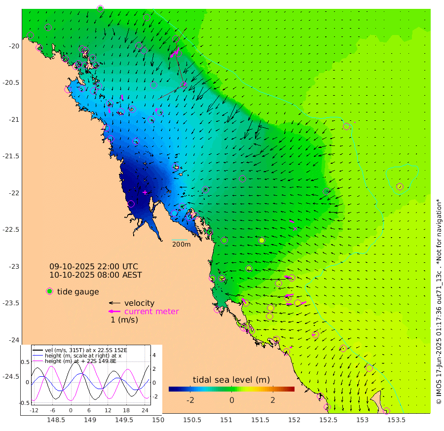 38cm/s 168T +10cm/s rms + 2cm/s 5T. Brampton I 18m 42cm/s 175T +9cm/s rms + 6cm/s 66T. Wigton I 38m 29cm/s -150T +7cm/s rms + 8cm/s 141T. Tern I 47m 62cm/s -159T +7cm/s rms + 12cm/s 54T. N Bugatti Rf 64m 67cm/s -146T +3cm/s rms + 13cm/s 178T. W Bugatti Rf 70m 29cm/s -156T +3cm/s rms + 3cm/s -130T. Creal Rf 69m 65cm/s -77T +7cm/s rms + 4cm/s 2T. North Rf 62m 55cm/s -36T +9cm/s rms + 2cm/s -56T. Cape Capricorn 26m 23cm/s -105T +5cm/s rms + 3cm/s 166T. L Musgrave I 42m 21cm/s -78T +9cm/s rms + 1cm/s -142T. Round Hill Hd 26m 7cm/s -119T +41cm/s rms + 48cm/s 116T. GBRELR 305m 41cm/s -67T +7cm/s rms + 6cm/s 123T. GBRCCH 92m 75cm/s -103T +8cm/s rms + 3cm/s -33T. GBRHIN 45m 47cm/s -92T +4cm/s rms + 2cm/s 41T. GBRHIS 46m 43cm/s -111T +16cm/s rms + 4cm/s -22T. GBROTE 59m -36cm Bell Cay -23cm Holbourne I -110cm Tern I -30cm Bugatti Rf -64cm Creal Rf -4cm White Tip I 52cm North Rf 58cm Rundle I 62cm L Musgrave I 58cm Saumarez Reef -2cm Kennedy Reef 15cm Unnamed Reef No. 2 -19cm Abbot Point -32cm Bowen -54cm Tideway Reef -41cm Hayman Island -73cm Square Reef -48cm Double Bay -83cm Molle Island -75cm Cid Harbour -52cm Hook Island -70cm Border Island -82cm Haslewood Island -75cm Shute Harbour -106cm Thomas Island -93cm Credlin Reef -127cm East Repulse Island -125cm Blacksmith Island -144cm Laguna Quays -123cm Carlisle Island (Off) -136cm St. Bees Island -126cm Scawfell Island -121cm Penrith Island -155cm Mackay Outer Harbour -162cm Hay Point -140cm Prudhoe Island -110cm Middle Island (Percy Isles) -31cm Gannet Cay 43cm Elusive Reef -285cm Mcewin Islet -89cm Mumford Island -135cm Osborn Island -145cm Marquis Island -121cm Reef Point -64cm High Peak Island -11cm Port Clinton 26cm Peaked Island 64cm Karamea Bank 39cm Johnson Patch - NW 30cm Rosslyn Bay 39cm Middle Island (Keppel Isles) 15cm Port Alma 59cm Heron Island 77cm One Tree Islet 66cm Polmaise Reef 49cm Tryon Island 65cm Rock Cod Shoal 43cm Gatcombe Head 34cm Gladstone 46cm South Trees (Storm Surge) 78cm Clews Point 66cm Round Hill Head 66cm Lady Elliot Island 65cm Breaksea Spit 64cm Bundaberg (Burnett Heads) 64cm Elliot Heads 56cm Waddy Point (Fraser Island)