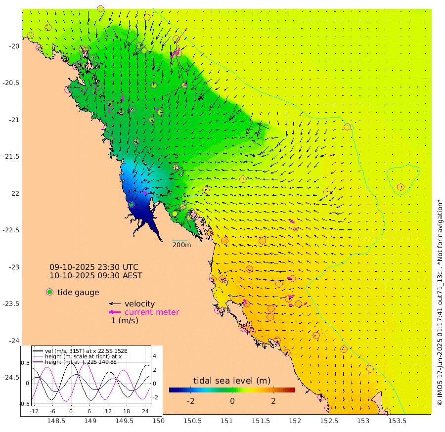 41cm/s 175T +10cm/s rms + 2cm/s 5T. Brampton I 18m 54cm/s 172T +9cm/s rms + 6cm/s 66T. Wigton I 38m 21cm/s -151T +7cm/s rms + 8cm/s 141T. Tern I 47m 63cm/s -165T +7cm/s rms + 12cm/s 54T. N Bugatti Rf 64m 76cm/s -149T +3cm/s rms + 13cm/s 178T. W Bugatti Rf 70m 30cm/s -172T +3cm/s rms + 3cm/s -130T. Creal Rf 69m 47cm/s -81T +7cm/s rms + 4cm/s 2T. North Rf 62m 47cm/s -29T +9cm/s rms + 2cm/s -56T. Cape Capricorn 26m 14cm/s -126T +5cm/s rms + 3cm/s 166T. L Musgrave I 42m 8cm/s -93T +9cm/s rms + 1cm/s -142T. Round Hill Hd 26m 6cm/s -124T +41cm/s rms + 48cm/s 116T. GBRELR 305m 45cm/s -68T +7cm/s rms + 6cm/s 123T. GBRCCH 92m 52cm/s -114T +8cm/s rms + 3cm/s -33T. GBRHIN 45m 29cm/s -96T +4cm/s rms + 2cm/s 41T. GBRHIS 46m 31cm/s -130T +16cm/s rms + 4cm/s -22T. GBROTE 59m 85cm Bell Cay 51cm Holbourne I 38cm Tern I 51cm Bugatti Rf 44cm Creal Rf 60cm White Tip I 123cm North Rf 152cm Rundle I 106cm L Musgrave I 94cm Saumarez Reef 62cm Kennedy Reef 73cm Unnamed Reef No. 2 51cm Abbot Point 45cm Bowen 34cm Tideway Reef 45cm Hayman Island 38cm Square Reef 45cm Double Bay 14cm Molle Island 28cm Cid Harbour 38cm Hook Island 22cm Border Island 18cm Haslewood Island 27cm Shute Harbour 15cm Thomas Island 38cm Credlin Reef 9cm East Repulse Island 7cm Blacksmith Island -8cm Laguna Quays 19cm Carlisle Island (Off) 24cm St. Bees Island 13cm Scawfell Island 30cm Penrith Island 7cm Mackay Outer Harbour 12cm Hay Point 31cm Prudhoe Island 72cm Middle Island (Percy Isles) 81cm Gannet Cay 77cm Elusive Reef -63cm Mcewin Islet 93cm Mumford Island 63cm Osborn Island 67cm Marquis Island 67cm Reef Point 86cm High Peak Island 133cm Port Clinton 157cm Peaked Island 134cm Karamea Bank 145cm Johnson Patch - NW 157cm Rosslyn Bay 164cm Middle Island (Keppel Isles) 163cm Port Alma 128cm Heron Island 142cm One Tree Islet 143cm Polmaise Reef 130cm Tryon Island 143cm Rock Cod Shoal 137cm Gatcombe Head 148cm Gladstone 150cm South Trees (Storm Surge) 139cm Clews Point 126cm Round Hill Head 107cm Lady Elliot Island 102cm Breaksea Spit 129cm Bundaberg (Burnett Heads) 133cm Elliot Heads 84cm Waddy Point (Fraser Island)