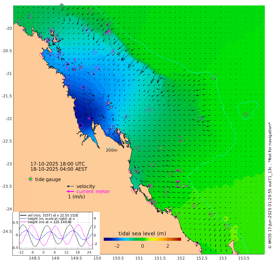32cm/s 168T +10cm/s rms + 2cm/s 5T. Brampton I 18m 30cm/s 178T +9cm/s rms + 6cm/s 66T. Wigton I 38m 27cm/s -149T +7cm/s rms + 8cm/s 141T. Tern I 47m 49cm/s -156T +7cm/s rms + 12cm/s 54T. N Bugatti Rf 64m 51cm/s -140T +3cm/s rms + 13cm/s 178T. W Bugatti Rf 70m 26cm/s -143T +3cm/s rms + 3cm/s -130T. Creal Rf 69m 55cm/s -73T +7cm/s rms + 4cm/s 2T. North Rf 62m 48cm/s -39T +9cm/s rms + 2cm/s -56T. Cape Capricorn 26m 13cm/s -94T +5cm/s rms + 3cm/s 166T. L Musgrave I 42m 22cm/s -72T +9cm/s rms + 1cm/s -142T. Round Hill Hd 26m 6cm/s -116T +41cm/s rms + 48cm/s 116T. GBRELR 305m 23cm/s -69T +7cm/s rms + 6cm/s 123T. GBRCCH 92m 64cm/s -100T +8cm/s rms + 3cm/s -33T. GBRHIN 45m 40cm/s -91T +4cm/s rms + 2cm/s 41T. GBRHIS 46m 35cm/s -112T +16cm/s rms + 4cm/s -22T. GBROTE 59m -82cm Bell Cay -58cm Holbourne I -156cm Tern I -71cm Bugatti Rf -109cm Creal Rf -44cm White Tip I 1cm North Rf 1cm Rundle I 19cm L Musgrave I 2cm Saumarez Reef -26cm Kennedy Reef -25cm Unnamed Reef No. 2 -59cm Abbot Point -71cm Bowen -98cm Tideway Reef -78cm Hayman Island -129cm Square Reef -92cm Double Bay -111cm Molle Island -113cm Cid Harbour -87cm Hook Island -102cm Border Island -120cm Haslewood Island -113cm Shute Harbour -147cm Thomas Island -144cm Credlin Reef -165cm East Repulse Island -156cm Blacksmith Island -177cm Laguna Quays -163cm Carlisle Island (Off) -185cm St. Bees Island -164cm Scawfell Island -163cm Penrith Island -194cm Mackay Outer Harbour -203cm Hay Point -199cm Prudhoe Island -155cm Middle Island (Percy Isles) -65cm Gannet Cay 7cm Elusive Reef -276cm Mcewin Islet -139cm Mumford Island -168cm Osborn Island -183cm Marquis Island -158cm Reef Point -112cm High Peak Island -67cm Port Clinton -55cm Peaked Island 8cm Karamea Bank -18cm Johnson Patch - NW -31cm Rosslyn Bay -30cm Middle Island (Keppel Isles) -45cm Port Alma 7cm Heron Island 22cm One Tree Islet 13cm Polmaise Reef -3cm Tryon Island 8cm Rock Cod Shoal -6cm Gatcombe Head -17cm Gladstone -5cm South Trees (Storm Surge) 30cm Clews Point 20cm Round Hill Head 21cm Lady Elliot Island 28cm Breaksea Spit 22cm Bundaberg (Burnett Heads) 21cm Elliot Heads 17cm Waddy Point (Fraser Island)