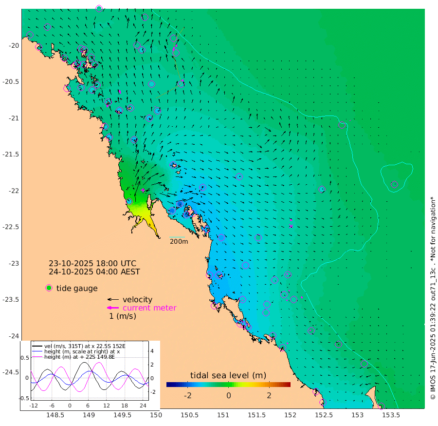 17cm/s -7T +10cm/s rms + 2cm/s 5T. Brampton I 18m 29cm/s -14T +9cm/s rms + 6cm/s 66T. Wigton I 38m 3cm/s 12T +7cm/s rms + 8cm/s 141T. Tern I 47m 22cm/s -2T +7cm/s rms + 12cm/s 54T. N Bugatti Rf 64m 31cm/s 27T +3cm/s rms + 13cm/s 178T. W Bugatti Rf 70m 16cm/s -13T +3cm/s rms + 3cm/s -130T. Creal Rf 69m 12cm/s -39T +7cm/s rms + 4cm/s 2T. North Rf 62m 6cm/s -161T +9cm/s rms + 2cm/s -56T. Cape Capricorn 26m 10cm/s -66T +5cm/s rms + 3cm/s 166T. L Musgrave I 42m 11cm/s -63T +9cm/s rms + 1cm/s -142T. Round Hill Hd 26m 2cm/s -39T +41cm/s rms + 48cm/s 116T. GBRELR 305m 15cm/s 98T +7cm/s rms + 6cm/s 123T. GBRCCH 92m 8cm/s -63T +8cm/s rms + 3cm/s -33T. GBRHIN 45m 9cm/s -65T +4cm/s rms + 2cm/s 41T. GBRHIS 46m 14cm/s -21T +16cm/s rms + 4cm/s -22T. GBROTE 59m -123cm Bell Cay -87cm Holbourne I -133cm Tern I -90cm Bugatti Rf -107cm Creal Rf -80cm White Tip I -95cm North Rf -120cm Rundle I -68cm L Musgrave I -66cm Saumarez Reef -89cm Kennedy Reef -75cm Unnamed Reef No. 2 -83cm Abbot Point -85cm Bowen -89cm Tideway Reef -93cm Hayman Island -118cm Square Reef -81cm Double Bay -98cm Molle Island -104cm Cid Harbour -91cm Hook Island -93cm Border Island -92cm Haslewood Island -97cm Shute Harbour -104cm Thomas Island -119cm Credlin Reef -106cm East Repulse Island -118cm Blacksmith Island -109cm Laguna Quays -115cm Carlisle Island (Off) -132cm St. Bees Island -121cm Scawfell Island -138cm Penrith Island -130cm Mackay Outer Harbour -139cm Hay Point -142cm Prudhoe Island -168cm Middle Island (Percy Isles) -113cm Gannet Cay -54cm Elusive Reef -138cm Mcewin Islet -188cm Mumford Island -183cm Osborn Island -187cm Marquis Island -169cm Reef Point -143cm High Peak Island -151cm Port Clinton -153cm Peaked Island -92cm Karamea Bank -134cm Johnson Patch - NW -147cm Rosslyn Bay -146cm Middle Island (Keppel Isles) -166cm Port Alma -95cm Heron Island -101cm One Tree Islet -107cm Polmaise Reef -107cm Tryon Island -98cm Rock Cod Shoal -117cm Gatcombe Head -136cm Gladstone -128cm South Trees (Storm Surge) -96cm Clews Point -88cm Round Hill Head -64cm Lady Elliot Island -61cm Breaksea Spit -95cm Bundaberg (Burnett Heads) -103cm Elliot Heads -46cm Waddy Point (Fraser Island)