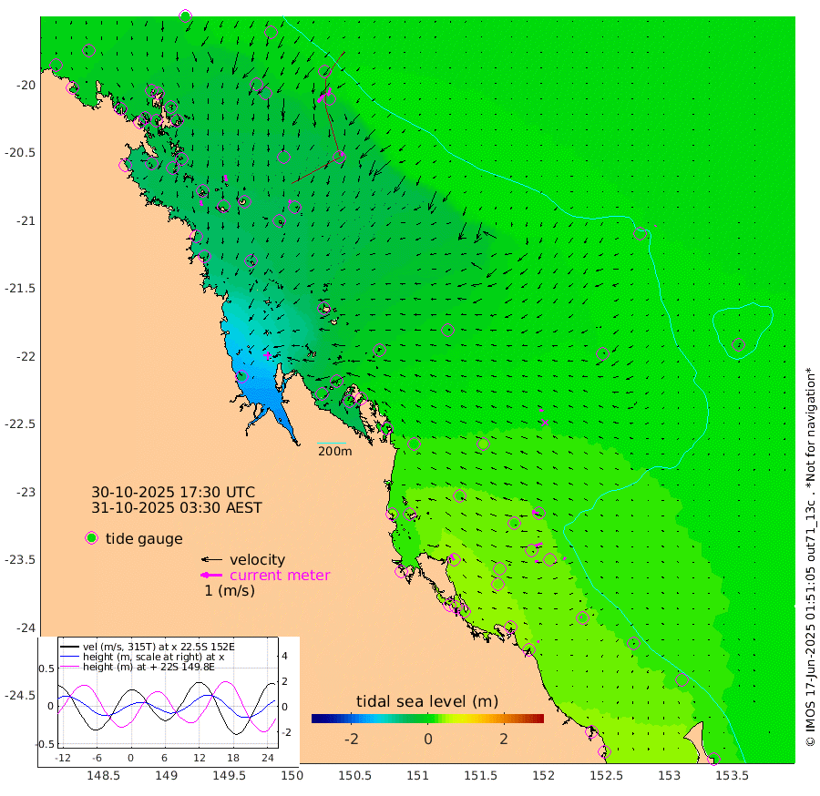 26cm/s 174T +10cm/s rms + 2cm/s 5T. Brampton I 18m 29cm/s 172T +9cm/s rms + 6cm/s 66T. Wigton I 38m 13cm/s -154T +7cm/s rms + 8cm/s 141T. Tern I 47m 38cm/s -162T +7cm/s rms + 12cm/s 54T. N Bugatti Rf 64m 44cm/s -145T +3cm/s rms + 13cm/s 178T. W Bugatti Rf 70m 18cm/s -163T +3cm/s rms + 3cm/s -130T. Creal Rf 69m 30cm/s -74T +7cm/s rms + 4cm/s 2T. North Rf 62m 29cm/s -34T +9cm/s rms + 2cm/s -56T. Cape Capricorn 26m 6cm/s -65T +5cm/s rms + 3cm/s 166T. L Musgrave I 42m 10cm/s -63T +9cm/s rms + 1cm/s -142T. Round Hill Hd 26m 3cm/s -135T +41cm/s rms + 48cm/s 116T. GBRELR 305m 16cm/s -68T +7cm/s rms + 6cm/s 123T. GBRCCH 92m 33cm/s -109T +8cm/s rms + 3cm/s -33T. GBRHIN 45m 16cm/s -94T +4cm/s rms + 2cm/s 41T. GBRHIS 46m 15cm/s -140T +16cm/s rms + 4cm/s -22T. GBROTE 59m -1cm Bell Cay -16cm Holbourne I -36cm Tern I -20cm Bugatti Rf -30cm Creal Rf -12cm White Tip I 26cm North Rf 40cm Rundle I 22cm L Musgrave I -1cm Saumarez Reef -1cm Kennedy Reef -2cm Unnamed Reef No. 2 -14cm Abbot Point -18cm Bowen -35cm Tideway Reef -14cm Hayman Island -48cm Square Reef -24cm Double Bay -37cm Molle Island -28cm Cid Harbour -27cm Hook Island -33cm Border Island -34cm Haslewood Island -32cm Shute Harbour -46cm Thomas Island -37cm Credlin Reef -39cm East Repulse Island -38cm Blacksmith Island -56cm Laguna Quays -38cm Carlisle Island (Off) -36cm St. Bees Island -31cm Scawfell Island -33cm Penrith Island -51cm Mackay Outer Harbour -50cm Hay Point -59cm Prudhoe Island -23cm Middle Island (Percy Isles) 9cm Gannet Cay 5cm Elusive Reef -64cm Mcewin Islet -1cm Mumford Island -2cm Osborn Island 1cm Marquis Island 1cm Reef Point -1cm High Peak Island 18cm Port Clinton 17cm Peaked Island 29cm Karamea Bank 26cm Johnson Patch - NW 38cm Rosslyn Bay 37cm Middle Island (Keppel Isles) 40cm Port Alma 28cm Heron Island 30cm One Tree Islet 34cm Polmaise Reef 28cm Tryon Island 37cm Rock Cod Shoal 37cm Gatcombe Head 40cm Gladstone 42cm South Trees (Storm Surge) 38cm Clews Point 32cm Round Hill Head 20cm Lady Elliot Island 23cm Breaksea Spit 36cm Bundaberg (Burnett Heads) 41cm Elliot Heads 13cm Waddy Point (Fraser Island)