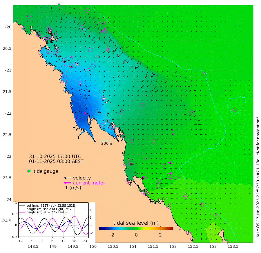 29cm/s 170T +10cm/s rms + 2cm/s 5T. Brampton I 18m 28cm/s 176T +9cm/s rms + 6cm/s 66T. Wigton I 38m 21cm/s -152T +7cm/s rms + 8cm/s 141T. Tern I 47m 40cm/s -155T +7cm/s rms + 12cm/s 54T. N Bugatti Rf 64m 43cm/s -141T +3cm/s rms + 13cm/s 178T. W Bugatti Rf 70m 20cm/s -150T +3cm/s rms + 3cm/s -130T. Creal Rf 69m 47cm/s -72T +7cm/s rms + 4cm/s 2T. North Rf 62m 40cm/s -39T +9cm/s rms + 2cm/s -56T. Cape Capricorn 26m 12cm/s -82T +5cm/s rms + 3cm/s 166T. L Musgrave I 42m 17cm/s -71T +9cm/s rms + 1cm/s -142T. Round Hill Hd 26m 5cm/s -124T +41cm/s rms + 48cm/s 116T. GBRELR 305m 20cm/s -70T +7cm/s rms + 6cm/s 123T. GBRCCH 92m 52cm/s -101T +8cm/s rms + 3cm/s -33T. GBRHIN 45m 30cm/s -92T +4cm/s rms + 2cm/s 41T. GBRHIS 46m 27cm/s -119T +16cm/s rms + 4cm/s -22T. GBROTE 59m -56cm Bell Cay -48cm Holbourne I -116cm Tern I -56cm Bugatti Rf -84cm Creal Rf -37cm White Tip I 9cm North Rf 13cm Rundle I 19cm L Musgrave I 1cm Saumarez Reef -29cm Kennedy Reef -20cm Unnamed Reef No. 2 -46cm Abbot Point -54cm Bowen -78cm Tideway Reef -59cm Hayman Island -107cm Square Reef -61cm Double Bay -90cm Molle Island -84cm Cid Harbour -68cm Hook Island -82cm Border Island -86cm Haslewood Island -85cm Shute Harbour -111cm Thomas Island -105cm Credlin Reef -112cm East Repulse Island -113cm Blacksmith Island -133cm Laguna Quays -111cm Carlisle Island (Off) -118cm St. Bees Island -110cm Scawfell Island -119cm Penrith Island -142cm Mackay Outer Harbour -147cm Hay Point -152cm Prudhoe Island -114cm Middle Island (Percy Isles) -41cm Gannet Cay 5cm Elusive Reef -194cm Mcewin Islet -103cm Mumford Island -115cm Osborn Island -114cm Marquis Island -100cm Reef Point -71cm High Peak Island -40cm Port Clinton -34cm Peaked Island 16cm Karamea Bank -8cm Johnson Patch - NW -8cm Rosslyn Bay -7cm Middle Island (Keppel Isles) -16cm Port Alma 15cm Heron Island 17cm One Tree Islet 16cm Polmaise Reef 5cm Tryon Island 22cm Rock Cod Shoal 8cm Gatcombe Head 2cm Gladstone 11cm South Trees (Storm Surge) 26cm Clews Point 22cm Round Hill Head 21cm Lady Elliot Island 24cm Breaksea Spit 26cm Bundaberg (Burnett Heads) 29cm Elliot Heads 14cm Waddy Point (Fraser Island)