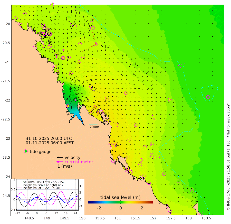 20cm/s -177T +10cm/s rms + 2cm/s 5T. Brampton I 18m 27cm/s 166T +9cm/s rms + 6cm/s 66T. Wigton I 38m 2cm/s 174T +7cm/s rms + 8cm/s 141T. Tern I 47m 35cm/s -174T +7cm/s rms + 12cm/s 54T. N Bugatti Rf 64m 48cm/s -152T +3cm/s rms + 13cm/s 178T. W Bugatti Rf 70m 16cm/s 169T +3cm/s rms + 3cm/s -130T. Creal Rf 69m 7cm/s -99T +7cm/s rms + 4cm/s 2T. North Rf 62m 13cm/s -9T +9cm/s rms + 2cm/s -56T. Cape Capricorn 26m 2cm/s -43T +5cm/s rms + 3cm/s 166T. L Musgrave I 42m 2cm/s 76T +9cm/s rms + 1cm/s -142T. Round Hill Hd 26m 2cm/s -169T +41cm/s rms + 48cm/s 116T. GBRELR 305m 14cm/s -67T +7cm/s rms + 6cm/s 123T. GBRCCH 92m 11cm/s -170T +8cm/s rms + 3cm/s -33T. GBRHIN 45m 4cm/s 98T +4cm/s rms + 2cm/s 41T. GBRHIS 46m 12cm/s 133T +16cm/s rms + 4cm/s -22T. GBROTE 59m 86cm Bell Cay 52cm Holbourne I 92cm Tern I 52cm Bugatti Rf 64cm Creal Rf 45cm White Tip I 62cm North Rf 87cm Rundle I 38cm L Musgrave I 20cm Saumarez Reef 55cm Kennedy Reef 45cm Unnamed Reef No. 2 56cm Abbot Point 57cm Bowen 53cm Tideway Reef 70cm Hayman Island 65cm Square Reef 58cm Double Bay 55cm Molle Island 69cm Cid Harbour 54cm Hook Island 55cm Border Island 56cm Haslewood Island 63cm Shute Harbour 68cm Thomas Island 80cm Credlin Reef 80cm East Repulse Island 80cm Blacksmith Island 71cm Laguna Quays 81cm Carlisle Island (Off) 99cm St. Bees Island 91cm Scawfell Island 99cm Penrith Island 90cm Mackay Outer Harbour 99cm Hay Point 95cm Prudhoe Island 112cm Middle Island (Percy Isles) 80cm Gannet Cay 24cm Elusive Reef 104cm Mcewin Islet 147cm Mumford Island 149cm Osborn Island 153cm Marquis Island 139cm Reef Point 104cm High Peak Island 107cm Port Clinton 109cm Peaked Island 60cm Karamea Bank 83cm Johnson Patch - NW 108cm Rosslyn Bay 110cm Middle Island (Keppel Isles) 122cm Port Alma 57cm Heron Island 61cm One Tree Islet 69cm Polmaise Reef 69cm Tryon Island 69cm Rock Cod Shoal 81cm Gatcombe Head 94cm Gladstone 89cm South Trees (Storm Surge) 64cm Clews Point 52cm Round Hill Head 31cm Lady Elliot Island 32cm Breaksea Spit 55cm Bundaberg (Burnett Heads) 61cm Elliot Heads 21cm Waddy Point (Fraser Island)