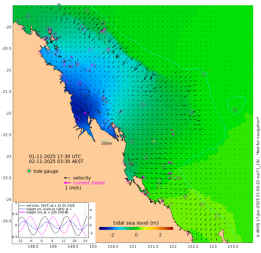 33cm/s 171T +10cm/s rms + 2cm/s 5T. Brampton I 18m 31cm/s 177T +9cm/s rms + 6cm/s 66T. Wigton I 38m 25cm/s -150T +7cm/s rms + 8cm/s 141T. Tern I 47m 48cm/s -155T +7cm/s rms + 12cm/s 54T. N Bugatti Rf 64m 52cm/s -141T +3cm/s rms + 13cm/s 178T. W Bugatti Rf 70m 24cm/s -148T +3cm/s rms + 3cm/s -130T. Creal Rf 69m 58cm/s -73T +7cm/s rms + 4cm/s 2T. North Rf 62m 47cm/s -39T +9cm/s rms + 2cm/s -56T. Cape Capricorn 26m 16cm/s -89T +5cm/s rms + 3cm/s 166T. L Musgrave I 42m 21cm/s -72T +9cm/s rms + 1cm/s -142T. Round Hill Hd 26m 6cm/s -119T +41cm/s rms + 48cm/s 116T. GBRELR 305m 27cm/s -69T +7cm/s rms + 6cm/s 123T. GBRCCH 92m 64cm/s -100T +8cm/s rms + 3cm/s -33T. GBRHIN 45m 38cm/s -92T +4cm/s rms + 2cm/s 41T. GBRHIS 46m 34cm/s -115T +16cm/s rms + 4cm/s -22T. GBROTE 59m -69cm Bell Cay -52cm Holbourne I -141cm Tern I -63cm Bugatti Rf -99cm Creal Rf -38cm White Tip I 12cm North Rf 14cm Rundle I 26cm L Musgrave I 9cm Saumarez Reef -30cm Kennedy Reef -16cm Unnamed Reef No. 2 -48cm Abbot Point -59cm Bowen -86cm Tideway Reef -67cm Hayman Island -122cm Square Reef -67cm Double Bay -103cm Molle Island -99cm Cid Harbour -77cm Hook Island -95cm Border Island -102cm Haslewood Island -99cm Shute Harbour -132cm Thomas Island -125cm Credlin Reef -137cm East Repulse Island -139cm Blacksmith Island -160cm Laguna Quays -137cm Carlisle Island (Off) -149cm St. Bees Island -140cm Scawfell Island -147cm Penrith Island -174cm Mackay Outer Harbour -182cm Hay Point -182cm Prudhoe Island -143cm Middle Island (Percy Isles) -54cm Gannet Cay 13cm Elusive Reef -252cm Mcewin Islet -133cm Mumford Island -153cm Osborn Island -156cm Marquis Island -134cm Reef Point -92cm High Peak Island -53cm Port Clinton -40cm Peaked Island 22cm Karamea Bank -11cm Johnson Patch - NW -14cm Rosslyn Bay -11cm Middle Island (Keppel Isles) -27cm Port Alma 19cm Heron Island 25cm One Tree Islet 20cm Polmaise Reef 7cm Tryon Island 27cm Rock Cod Shoal 6cm Gatcombe Head -3cm Gladstone 8cm South Trees (Storm Surge) 33cm Clews Point 27cm Round Hill Head 29cm Lady Elliot Island 33cm Breaksea Spit 31cm Bundaberg (Burnett Heads) 32cm Elliot Heads 22cm Waddy Point (Fraser Island)