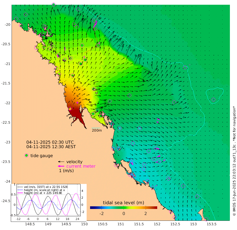 49cm/s -10T +10cm/s rms + 2cm/s 5T. Brampton I 18m 59cm/s -9T +9cm/s rms + 6cm/s 66T. Wigton I 38m 26cm/s 21T +7cm/s rms + 8cm/s 141T. Tern I 47m 75cm/s 17T +7cm/s rms + 12cm/s 54T. N Bugatti Rf 64m 91cm/s 32T +3cm/s rms + 13cm/s 178T. W Bugatti Rf 70m 37cm/s 9T +3cm/s rms + 3cm/s -130T. Creal Rf 69m 57cm/s 102T +7cm/s rms + 4cm/s 2T. North Rf 62m 54cm/s 149T +9cm/s rms + 2cm/s -56T. Cape Capricorn 26m 17cm/s 80T +5cm/s rms + 3cm/s 166T. L Musgrave I 42m 15cm/s 113T +9cm/s rms + 1cm/s -142T. Round Hill Hd 26m 7cm/s 39T +41cm/s rms + 48cm/s 116T. GBRELR 305m 43cm/s 111T +7cm/s rms + 6cm/s 123T. GBRCCH 92m 61cm/s 70T +8cm/s rms + 3cm/s -33T. GBRHIN 45m 33cm/s 83T +4cm/s rms + 2cm/s 41T. GBRHIS 46m 34cm/s 51T +16cm/s rms + 4cm/s -22T. GBROTE 59m -46cm Bell Cay -28cm Holbourne I 12cm Tern I -16cm Bugatti Rf 0cm Creal Rf -31cm White Tip I -96cm North Rf -126cm Rundle I -82cm L Musgrave I -67cm Saumarez Reef -39cm Kennedy Reef -52cm Unnamed Reef No. 2 -33cm Abbot Point -24cm Bowen 1cm Tideway Reef -21cm Hayman Island 10cm Square Reef -14cm Double Bay 14cm Molle Island 5cm Cid Harbour -5cm Hook Island 10cm Border Island 12cm Haslewood Island 6cm Shute Harbour 31cm Thomas Island 8cm Credlin Reef 29cm East Repulse Island 40cm Blacksmith Island 56cm Laguna Quays 21cm Carlisle Island (Off) 37cm St. Bees Island 33cm Scawfell Island 16cm Penrith Island 49cm Mackay Outer Harbour 46cm Hay Point 35cm Prudhoe Island -8cm Middle Island (Percy Isles) -48cm Gannet Cay -55cm Elusive Reef 137cm Mcewin Islet -40cm Mumford Island -12cm Osborn Island -13cm Marquis Island -20cm Reef Point -42cm High Peak Island -90cm Port Clinton -111cm Peaked Island -108cm Karamea Bank -102cm Johnson Patch - NW -123cm Rosslyn Bay -131cm Middle Island (Keppel Isles) -125cm Port Alma -99cm Heron Island -110cm One Tree Islet -111cm Polmaise Reef -92cm Tryon Island -120cm Rock Cod Shoal -110cm Gatcombe Head -116cm Gladstone -121cm South Trees (Storm Surge) -114cm Clews Point -100cm Round Hill Head -81cm Lady Elliot Island -73cm Breaksea Spit -106cm Bundaberg (Burnett Heads) -110cm Elliot Heads -57cm Waddy Point (Fraser Island)
