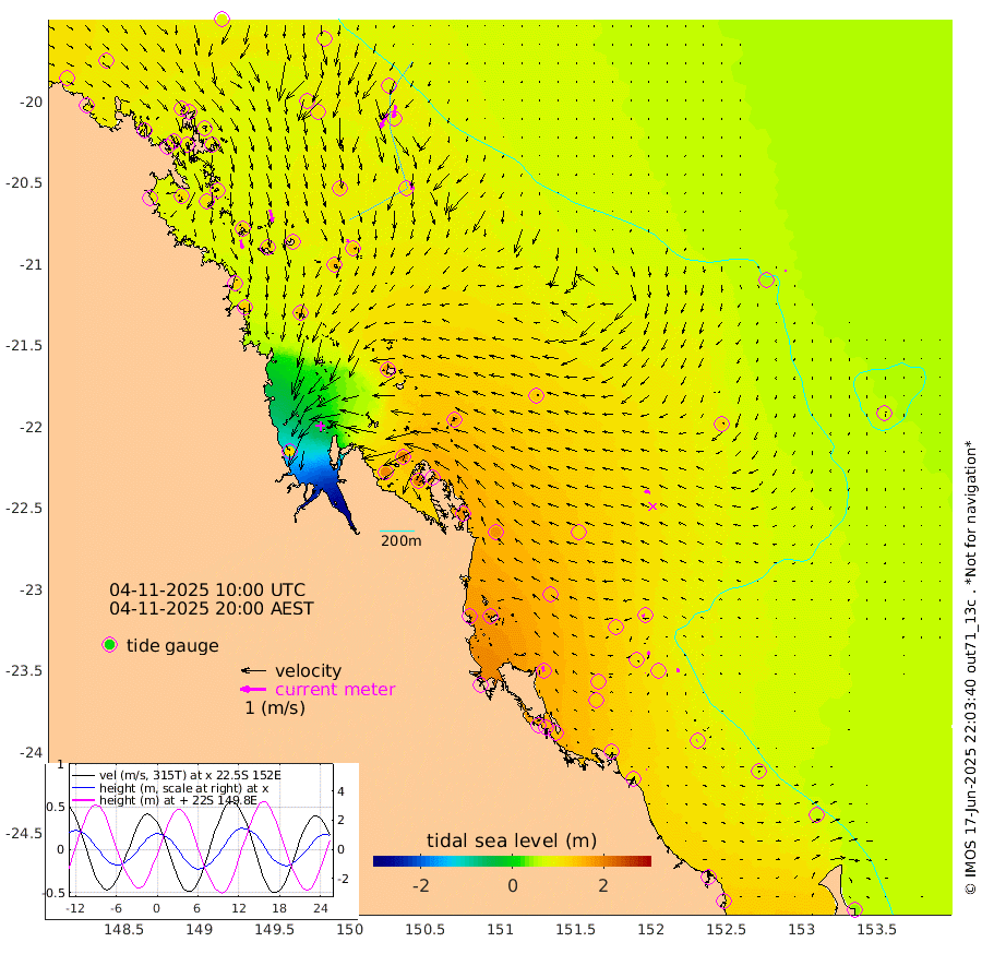 34cm/s 168T +10cm/s rms + 2cm/s 5T. Brampton I 18m 48cm/s 167T +9cm/s rms + 6cm/s 66T. Wigton I 38m 9cm/s 174T +7cm/s rms + 8cm/s 141T. Tern I 47m 50cm/s -170T +7cm/s rms + 12cm/s 54T. N Bugatti Rf 64m 64cm/s -155T +3cm/s rms + 13cm/s 178T. W Bugatti Rf 70m 27cm/s 168T +3cm/s rms + 3cm/s -130T. Creal Rf 69m 11cm/s -106T +7cm/s rms + 4cm/s 2T. North Rf 62m 20cm/s -14T +9cm/s rms + 2cm/s -56T. Cape Capricorn 26m 2cm/s -127T +5cm/s rms + 3cm/s 166T. L Musgrave I 42m 5cm/s 90T +9cm/s rms + 1cm/s -142T. Round Hill Hd 26m 5cm/s 167T +41cm/s rms + 48cm/s 116T. GBRELR 305m 24cm/s -74T +7cm/s rms + 6cm/s 123T. GBRCCH 92m 15cm/s -162T +8cm/s rms + 3cm/s -33T. GBRHIN 45m 3cm/s 140T +4cm/s rms + 2cm/s 41T. GBRHIS 46m 16cm/s 166T +16cm/s rms + 4cm/s -22T. GBROTE 59m 137cm Bell Cay 92cm Holbourne I 138cm Tern I 87cm Bugatti Rf 104cm Creal Rf 79cm White Tip I 111cm North Rf 150cm Rundle I 76cm L Musgrave I 68cm Saumarez Reef 83cm Kennedy Reef 83cm Unnamed Reef No. 2 93cm Abbot Point 94cm Bowen 87cm Tideway Reef 100cm Hayman Island 109cm Square Reef 98cm Double Bay 95cm Molle Island 102cm Cid Harbour 90cm Hook Island 85cm Border Island 96cm Haslewood Island 99cm Shute Harbour 100cm Thomas Island 122cm Credlin Reef 115cm East Repulse Island 105cm Blacksmith Island 101cm Laguna Quays 125cm Carlisle Island (Off) 130cm St. Bees Island 120cm Scawfell Island 141cm Penrith Island 127cm Mackay Outer Harbour 140cm Hay Point 146cm Prudhoe Island 172cm Middle Island (Percy Isles) 127cm Gannet Cay 53cm Elusive Reef 114cm Mcewin Islet 201cm Mumford Island 193cm Osborn Island 204cm Marquis Island 187cm Reef Point 162cm High Peak Island 179cm Port Clinton 184cm Peaked Island 115cm Karamea Bank 147cm Johnson Patch - NW 180cm Rosslyn Bay 185cm Middle Island (Keppel Isles) 201cm Port Alma 110cm Heron Island 110cm One Tree Islet 123cm Polmaise Reef 114cm Tryon Island 129cm Rock Cod Shoal 142cm Gatcombe Head 162cm Gladstone 155cm South Trees (Storm Surge) 111cm Clews Point 100cm Round Hill Head 70cm Lady Elliot Island 58cm Breaksea Spit 109cm Bundaberg (Burnett Heads) 117cm Elliot Heads 45cm Waddy Point (Fraser Island)