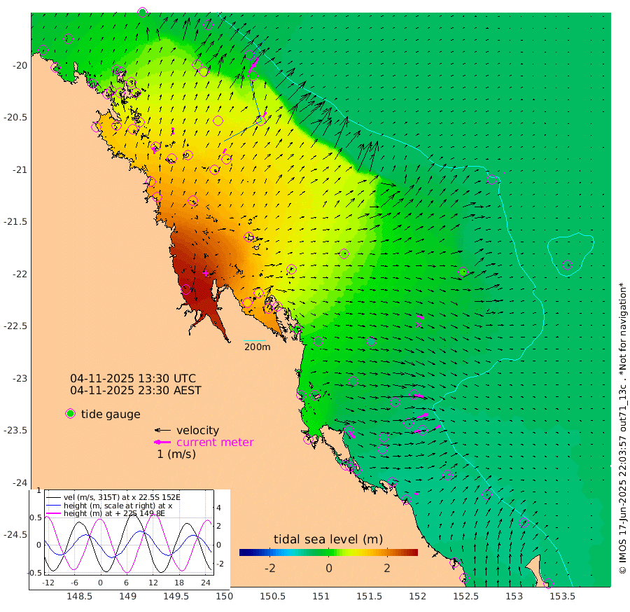 42cm/s -7T +10cm/s rms + 2cm/s 5T. Brampton I 18m 43cm/s -4T +9cm/s rms + 6cm/s 66T. Wigton I 38m 33cm/s 31T +7cm/s rms + 8cm/s 141T. Tern I 47m 68cm/s 22T +7cm/s rms + 12cm/s 54T. N Bugatti Rf 64m 75cm/s 34T +3cm/s rms + 13cm/s 178T. W Bugatti Rf 70m 33cm/s 28T +3cm/s rms + 3cm/s -130T. Creal Rf 69m 63cm/s 103T +7cm/s rms + 4cm/s 2T. North Rf 62m 54cm/s 142T +9cm/s rms + 2cm/s -56T. Cape Capricorn 26m 19cm/s 78T +5cm/s rms + 3cm/s 166T. L Musgrave I 42m 19cm/s 98T +9cm/s rms + 1cm/s -142T. Round Hill Hd 26m 7cm/s 62T +41cm/s rms + 48cm/s 116T. GBRELR 305m 40cm/s 108T +7cm/s rms + 6cm/s 123T. GBRCCH 92m 74cm/s 74T +8cm/s rms + 3cm/s -33T. GBRHIN 45m 46cm/s 88T +4cm/s rms + 2cm/s 41T. GBRHIS 46m 41cm/s 68T +16cm/s rms + 4cm/s -22T. GBROTE 59m 29cm Bell Cay -5cm Holbourne I 104cm Tern I 12cm Bugatti Rf 55cm Creal Rf -19cm White Tip I -63cm North Rf -70cm Rundle I -70cm L Musgrave I -57cm Saumarez Reef -31cm Kennedy Reef -45cm Unnamed Reef No. 2 -12cm Abbot Point 3cm Bowen 34cm Tideway Reef 14cm Hayman Island 62cm Square Reef 9cm Double Bay 41cm Molle Island 55cm Cid Harbour 24cm Hook Island 54cm Border Island 64cm Haslewood Island 53cm Shute Harbour 93cm Thomas Island 82cm Credlin Reef 106cm East Repulse Island 107cm Blacksmith Island 130cm Laguna Quays 105cm Carlisle Island (Off) 116cm St. Bees Island 113cm Scawfell Island 109cm Penrith Island 147cm Mackay Outer Harbour 156cm Hay Point 145cm Prudhoe Island 102cm Middle Island (Percy Isles) 20cm Gannet Cay -64cm Elusive Reef 276cm Mcewin Islet 85cm Mumford Island 129cm Osborn Island 138cm Marquis Island 109cm Reef Point 55cm High Peak Island 1cm Port Clinton -23cm Peaked Island -75cm Karamea Bank -49cm Johnson Patch - NW -41cm Rosslyn Bay -47cm Middle Island (Keppel Isles) -25cm Port Alma -71cm Heron Island -85cm One Tree Islet -75cm Polmaise Reef -63cm Tryon Island -79cm Rock Cod Shoal -56cm Gatcombe Head -44cm Gladstone -58cm South Trees (Storm Surge) -86cm Clews Point -74cm Round Hill Head -73cm Lady Elliot Island -79cm Breaksea Spit -77cm Bundaberg (Burnett Heads) -78cm Elliot Heads -60cm Waddy Point (Fraser Island)
