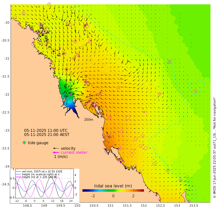 29cm/s 166T +10cm/s rms + 2cm/s 5T. Brampton I 18m 43cm/s 165T +9cm/s rms + 6cm/s 66T. Wigton I 38m 7cm/s 144T +7cm/s rms + 8cm/s 141T. Tern I 47m 40cm/s -172T +7cm/s rms + 12cm/s 54T. N Bugatti Rf 64m 52cm/s -157T +3cm/s rms + 13cm/s 178T. W Bugatti Rf 70m 23cm/s 158T +3cm/s rms + 3cm/s -130T. Creal Rf 69m 4cm/s -157T +7cm/s rms + 4cm/s 2T. North Rf 62m 13cm/s -1T +9cm/s rms + 2cm/s -56T. Cape Capricorn 26m 0cm/s -30T +5cm/s rms + 3cm/s 166T. L Musgrave I 42m 7cm/s 92T +9cm/s rms + 1cm/s -142T. Round Hill Hd 26m 5cm/s 153T +41cm/s rms + 48cm/s 116T. GBRELR 305m 17cm/s -75T +7cm/s rms + 6cm/s 123T. GBRCCH 92m 13cm/s 155T +8cm/s rms + 3cm/s -33T. GBRHIN 45m 10cm/s 101T +4cm/s rms + 2cm/s 41T. GBRHIS 46m 17cm/s 142T +16cm/s rms + 4cm/s -22T. GBROTE 59m 136cm Bell Cay 81cm Holbourne I 146cm Tern I 80cm Bugatti Rf 105cm Creal Rf 66cm White Tip I 96cm North Rf 135cm Rundle I 61cm L Musgrave I 54cm Saumarez Reef 69cm Kennedy Reef 67cm Unnamed Reef No. 2 79cm Abbot Point 82cm Bowen 81cm Tideway Reef 90cm Hayman Island 106cm Square Reef 92cm Double Bay 86cm Molle Island 99cm Cid Harbour 85cm Hook Island 81cm Border Island 95cm Haslewood Island 96cm Shute Harbour 106cm Thomas Island 123cm Credlin Reef 120cm East Repulse Island 113cm Blacksmith Island 112cm Laguna Quays 131cm Carlisle Island (Off) 144cm St. Bees Island 130cm Scawfell Island 146cm Penrith Island 142cm Mackay Outer Harbour 156cm Hay Point 162cm Prudhoe Island 185cm Middle Island (Percy Isles) 126cm Gannet Cay 35cm Elusive Reef 154cm Mcewin Islet 206cm Mumford Island 205cm Osborn Island 220cm Marquis Island 197cm Reef Point 166cm High Peak Island 177cm Port Clinton 176cm Peaked Island 98cm Karamea Bank 136cm Johnson Patch - NW 170cm Rosslyn Bay 173cm Middle Island (Keppel Isles) 194cm Port Alma 95cm Heron Island 92cm One Tree Islet 108cm Polmaise Reef 99cm Tryon Island 112cm Rock Cod Shoal 130cm Gatcombe Head 153cm Gladstone 144cm South Trees (Storm Surge) 93cm Clews Point 85cm Round Hill Head 55cm Lady Elliot Island 42cm Breaksea Spit 94cm Bundaberg (Burnett Heads) 102cm Elliot Heads 31cm Waddy Point (Fraser Island)