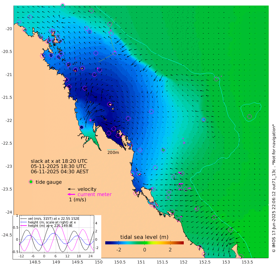 7cm/s 154T +10cm/s rms + 2cm/s 5T. Brampton I 18m 7cm/s -73T +9cm/s rms + 6cm/s 66T. Wigton I 38m 20cm/s -142T +7cm/s rms + 8cm/s 141T. Tern I 47m 19cm/s -129T +7cm/s rms + 12cm/s 54T. N Bugatti Rf 64m 12cm/s -101T +3cm/s rms + 13cm/s 178T. W Bugatti Rf 70m 16cm/s -102T +3cm/s rms + 3cm/s -130T. Creal Rf 69m 54cm/s -70T +7cm/s rms + 4cm/s 2T. North Rf 62m 36cm/s -47T +9cm/s rms + 2cm/s -56T. Cape Capricorn 26m 22cm/s -91T +5cm/s rms + 3cm/s 166T. L Musgrave I 42m 26cm/s -71T +9cm/s rms + 1cm/s -142T. Round Hill Hd 26m 6cm/s -86T +41cm/s rms + 48cm/s 116T. GBRELR 305m 12cm/s -52T +7cm/s rms + 6cm/s 123T. GBRCCH 92m 61cm/s -94T +8cm/s rms + 3cm/s -33T. GBRHIN 45m 44cm/s -89T +4cm/s rms + 2cm/s 41T. GBRHIS 46m 38cm/s -87T +16cm/s rms + 4cm/s -22T. GBROTE 59m -169cm Bell Cay -117cm Holbourne I -240cm Tern I -125cm Bugatti Rf -171cm Creal Rf -93cm White Tip I -69cm North Rf -95cm Rundle I -29cm L Musgrave I -31cm Saumarez Reef -94cm Kennedy Reef -78cm Unnamed Reef No. 2 -114cm Abbot Point -127cm Bowen -147cm Tideway Reef -139cm Hayman Island -188cm Square Reef -148cm Double Bay -170cm Molle Island -176cm Cid Harbour -144cm Hook Island -156cm Border Island -172cm Haslewood Island -171cm Shute Harbour -205cm Thomas Island -213cm Credlin Reef -230cm East Repulse Island -227cm Blacksmith Island -236cm Laguna Quays -235cm Carlisle Island (Off) -266cm St. Bees Island -238cm Scawfell Island -249cm Penrith Island -270cm Mackay Outer Harbour -287cm Hay Point -279cm Prudhoe Island -272cm Middle Island (Percy Isles) -152cm Gannet Cay -27cm Elusive Reef -368cm Mcewin Islet -275cm Mumford Island -305cm Osborn Island -323cm Marquis Island -286cm Reef Point -216cm High Peak Island -185cm Port Clinton -164cm Peaked Island -62cm Karamea Bank -118cm Johnson Patch - NW -149cm Rosslyn Bay -146cm Middle Island (Keppel Isles) -181cm Port Alma -63cm Heron Island -51cm One Tree Islet -70cm Polmaise Reef -81cm Tryon Island -72cm Rock Cod Shoal -100cm Gatcombe Head -129cm Gladstone -111cm South Trees (Storm Surge) -46cm Clews Point -47cm Round Hill Head -22cm Lady Elliot Island -14cm Breaksea Spit -55cm Bundaberg (Burnett Heads) -62cm Elliot Heads -8cm Waddy Point (Fraser Island)