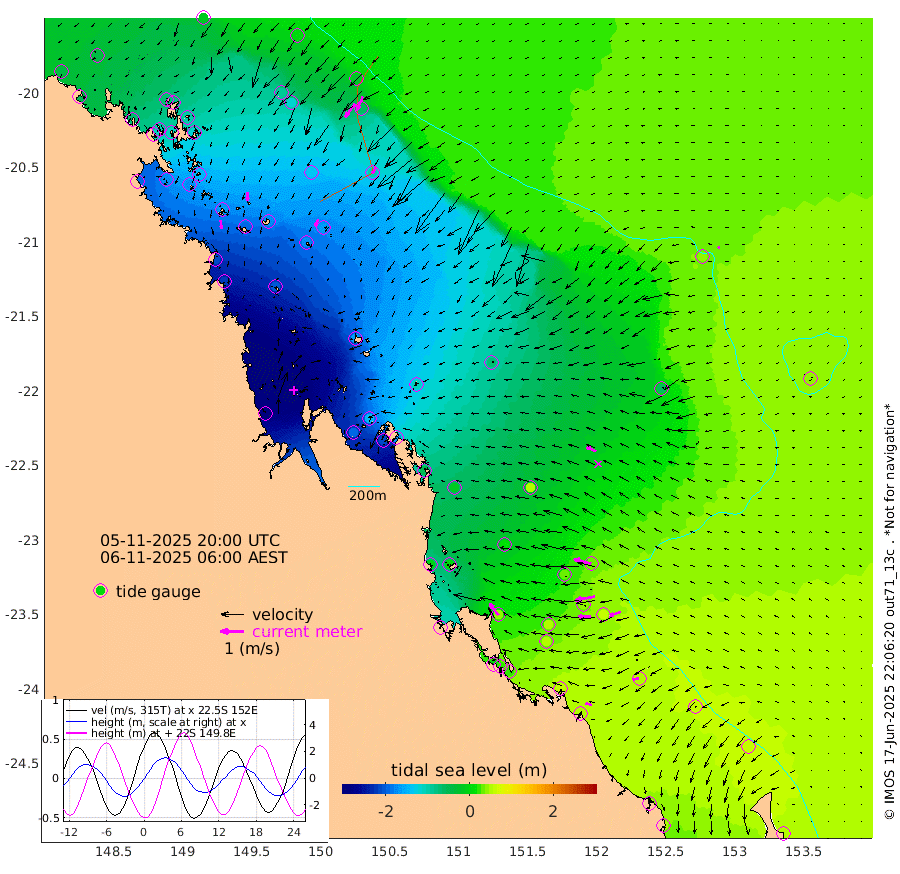 38cm/s 172T +10cm/s rms + 2cm/s 5T. Brampton I 18m 39cm/s 178T +9cm/s rms + 6cm/s 66T. Wigton I 38m 33cm/s -148T +7cm/s rms + 8cm/s 141T. Tern I 47m 64cm/s -157T +7cm/s rms + 12cm/s 54T. N Bugatti Rf 64m 71cm/s -143T +3cm/s rms + 13cm/s 178T. W Bugatti Rf 70m 32cm/s -149T +3cm/s rms + 3cm/s -130T. Creal Rf 69m 77cm/s -75T +7cm/s rms + 4cm/s 2T. North Rf 62m 62cm/s -37T +9cm/s rms + 2cm/s -56T. Cape Capricorn 26m 27cm/s -101T +5cm/s rms + 3cm/s 166T. L Musgrave I 42m 27cm/s -75T +9cm/s rms + 1cm/s -142T. Round Hill Hd 26m 9cm/s -107T +41cm/s rms + 48cm/s 116T. GBRELR 305m 43cm/s -66T +7cm/s rms + 6cm/s 123T. GBRCCH 92m 86cm/s -101T +8cm/s rms + 3cm/s -33T. GBRHIN 45m 54cm/s -92T +4cm/s rms + 2cm/s 41T. GBRHIS 46m 48cm/s -108T +16cm/s rms + 4cm/s -22T. GBROTE 59m -71cm Bell Cay -45cm Holbourne I -161cm Tern I -57cm Bugatti Rf -102cm Creal Rf -23cm White Tip I 37cm North Rf 38cm Rundle I 54cm L Musgrave I 42cm Saumarez Reef -18cm Kennedy Reef 1cm Unnamed Reef No. 2 -40cm Abbot Point -55cm Bowen -85cm Tideway Reef -66cm Hayman Island -118cm Square Reef -73cm Double Bay -111cm Molle Island -110cm Cid Harbour -78cm Hook Island -102cm Border Island -117cm Haslewood Island -108cm Shute Harbour -148cm Thomas Island -138cm Credlin Reef -169cm East Repulse Island -170cm Blacksmith Island -190cm Laguna Quays -167cm Carlisle Island (Off) -191cm St. Bees Island -176cm Scawfell Island -172cm Penrith Island -209cm Mackay Outer Harbour -219cm Hay Point -202cm Prudhoe Island -166cm Middle Island (Percy Isles) -61cm Gannet Cay 39cm Elusive Reef -346cm Mcewin Islet -148cm Mumford Island -194cm Osborn Island -207cm Marquis Island -175cm Reef Point -109cm High Peak Island -50cm Port Clinton -17cm Peaked Island 50cm Karamea Bank 11cm Johnson Patch - NW -2cm Rosslyn Bay 6cm Middle Island (Keppel Isles) -24cm Port Alma 43cm Heron Island 63cm One Tree Islet 49cm Polmaise Reef 31cm Tryon Island 50cm Rock Cod Shoal 22cm Gatcombe Head 6cm Gladstone 22cm South Trees (Storm Surge) 66cm Clews Point 54cm Round Hill Head 59cm Lady Elliot Island 63cm Breaksea Spit 52cm Bundaberg (Burnett Heads) 49cm Elliot Heads 52cm Waddy Point (Fraser Island)