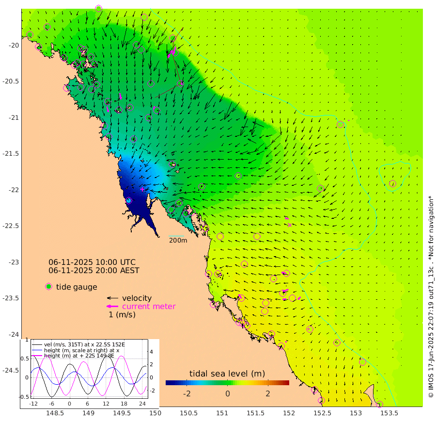 50cm/s 163T +10cm/s rms + 2cm/s 5T. Brampton I 18m 56cm/s 170T +9cm/s rms + 6cm/s 66T. Wigton I 38m 27cm/s -163T +7cm/s rms + 8cm/s 141T. Tern I 47m 70cm/s -161T +7cm/s rms + 12cm/s 54T. N Bugatti Rf 64m 78cm/s -150T +3cm/s rms + 13cm/s 178T. W Bugatti Rf 70m 34cm/s -172T +3cm/s rms + 3cm/s -130T. Creal Rf 69m 43cm/s -77T +7cm/s rms + 4cm/s 2T. North Rf 62m 43cm/s -34T +9cm/s rms + 2cm/s -56T. Cape Capricorn 26m 17cm/s -89T +5cm/s rms + 3cm/s 166T. L Musgrave I 42m 11cm/s -71T +9cm/s rms + 1cm/s -142T. Round Hill Hd 26m 7cm/s -166T +41cm/s rms + 48cm/s 116T. GBRELR 305m 32cm/s -77T +7cm/s rms + 6cm/s 123T. GBRCCH 92m 52cm/s -110T +8cm/s rms + 3cm/s -33T. GBRHIN 45m 30cm/s -97T +4cm/s rms + 2cm/s 41T. GBRHIS 46m 33cm/s -136T +16cm/s rms + 4cm/s -22T. GBROTE 59m 31cm Bell Cay 26cm Holbourne I -20cm Tern I 11cm Bugatti Rf -4cm Creal Rf 25cm White Tip I 74cm North Rf 100cm Rundle I 63cm L Musgrave I 58cm Saumarez Reef 35cm Kennedy Reef 42cm Unnamed Reef No. 2 26cm Abbot Point 17cm Bowen -7cm Tideway Reef 10cm Hayman Island -12cm Square Reef 15cm Double Bay -14cm Molle Island -11cm Cid Harbour 3cm Hook Island -20cm Border Island -17cm Haslewood Island -12cm Shute Harbour -35cm Thomas Island -22cm Credlin Reef -43cm East Repulse Island -43cm Blacksmith Island -58cm Laguna Quays -33cm Carlisle Island (Off) -35cm St. Bees Island -36cm Scawfell Island -27cm Penrith Island -56cm Mackay Outer Harbour -55cm Hay Point -39cm Prudhoe Island 4cm Middle Island (Percy Isles) 32cm Gannet Cay 39cm Elusive Reef -148cm Mcewin Islet 26cm Mumford Island -13cm Osborn Island -11cm Marquis Island -3cm Reef Point 27cm High Peak Island 72cm Port Clinton 92cm Peaked Island 83cm Karamea Bank 86cm Johnson Patch - NW 97cm Rosslyn Bay 103cm Middle Island (Keppel Isles) 100cm Port Alma 80cm Heron Island 87cm One Tree Islet 91cm Polmaise Reef 69cm Tryon Island 91cm Rock Cod Shoal 90cm Gatcombe Head 93cm Gladstone 98cm South Trees (Storm Surge) 91cm Clews Point 79cm Round Hill Head 62cm Lady Elliot Island 54cm Breaksea Spit 88cm Bundaberg (Burnett Heads) 95cm Elliot Heads 39cm Waddy Point (Fraser Island)