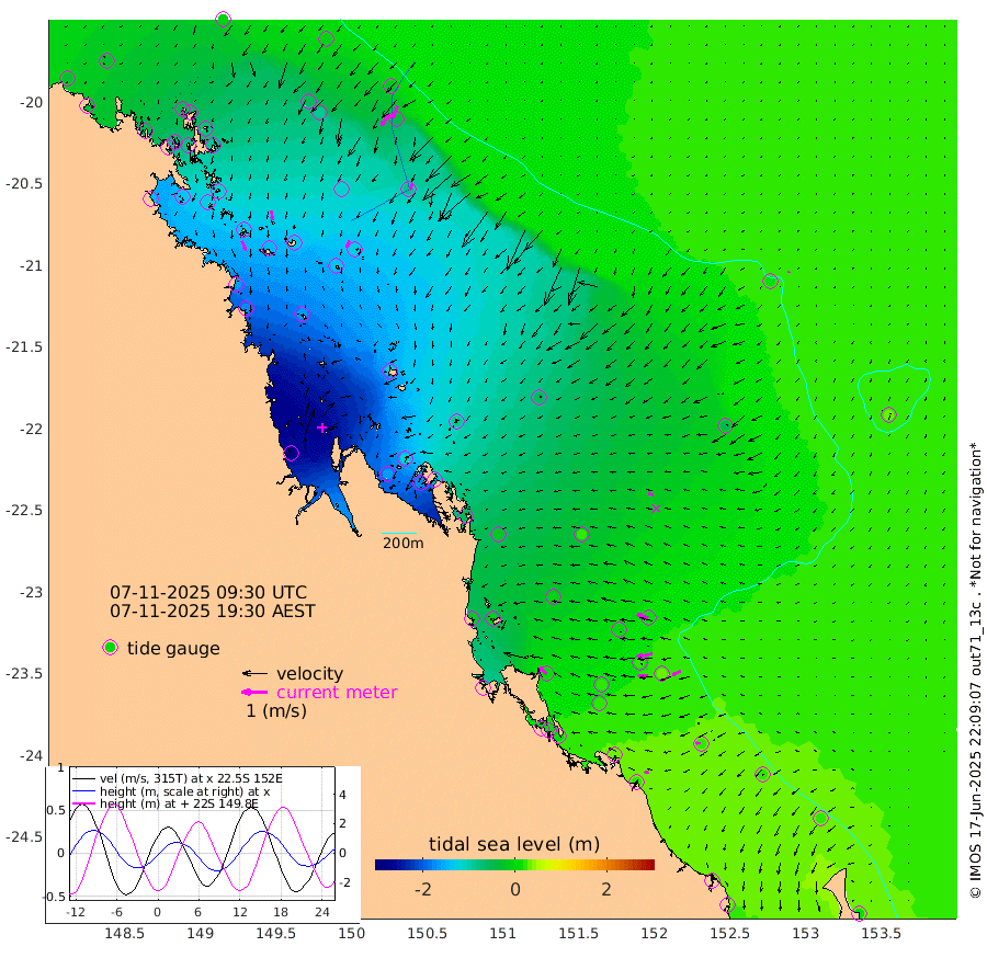 41cm/s 156T +10cm/s rms + 2cm/s 5T. Brampton I 18m 38cm/s 172T +9cm/s rms + 6cm/s 66T. Wigton I 38m 30cm/s -160T +7cm/s rms + 8cm/s 141T. Tern I 47m 54cm/s -156T +7cm/s rms + 12cm/s 54T. N Bugatti Rf 64m 55cm/s -146T +3cm/s rms + 13cm/s 178T. W Bugatti Rf 70m 28cm/s -159T +3cm/s rms + 3cm/s -130T. Creal Rf 69m 46cm/s -73T +7cm/s rms + 4cm/s 2T. North Rf 62m 40cm/s -42T +9cm/s rms + 2cm/s -56T. Cape Capricorn 26m 20cm/s -87T +5cm/s rms + 3cm/s 166T. L Musgrave I 42m 17cm/s -75T +9cm/s rms + 1cm/s -142T. Round Hill Hd 26m 6cm/s -160T +41cm/s rms + 48cm/s 116T. GBRELR 305m 22cm/s -83T +7cm/s rms + 6cm/s 123T. GBRCCH 92m 60cm/s -100T +8cm/s rms + 3cm/s -33T. GBRHIN 45m 38cm/s -94T +4cm/s rms + 2cm/s 41T. GBRHIS 46m 37cm/s -120T +16cm/s rms + 4cm/s -22T. GBROTE 59m -62cm Bell Cay -27cm Holbourne I -127cm Tern I -45cm Bugatti Rf -80cm Creal Rf -20cm White Tip I 12cm North Rf 16cm Rundle I 24cm L Musgrave I 31cm Saumarez Reef -7cm Kennedy Reef -1cm Unnamed Reef No. 2 -24cm Abbot Point -37cm Bowen -65cm Tideway Reef -52cm Hayman Island -85cm Square Reef -52cm Double Bay -78cm Molle Island -80cm Cid Harbour -59cm Hook Island -79cm Border Island -85cm Haslewood Island -81cm Shute Harbour -116cm Thomas Island -113cm Credlin Reef -137cm East Repulse Island -127cm Blacksmith Island -147cm Laguna Quays -132cm Carlisle Island (Off) -143cm St. Bees Island -132cm Scawfell Island -135cm Penrith Island -168cm Mackay Outer Harbour -177cm Hay Point -161cm Prudhoe Island -129cm Middle Island (Percy Isles) -56cm Gannet Cay 14cm Elusive Reef -292cm Mcewin Islet -115cm Mumford Island -161cm Osborn Island -171cm Marquis Island -144cm Reef Point -88cm High Peak Island -47cm Port Clinton -19cm Peaked Island 20cm Karamea Bank -1cm Johnson Patch - NW -12cm Rosslyn Bay -7cm Middle Island (Keppel Isles) -25cm Port Alma 20cm Heron Island 29cm One Tree Islet 24cm Polmaise Reef 3cm Tryon Island 20cm Rock Cod Shoal 8cm Gatcombe Head -4cm Gladstone 8cm South Trees (Storm Surge) 34cm Clews Point 26cm Round Hill Head 27cm Lady Elliot Island 24cm Breaksea Spit 32cm Bundaberg (Burnett Heads) 36cm Elliot Heads 14cm Waddy Point (Fraser Island)