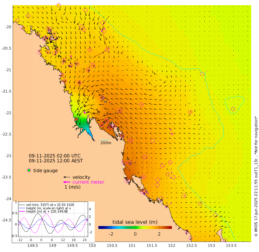 14cm/s -141T +10cm/s rms + 2cm/s 5T. Brampton I 18m 24cm/s 170T +9cm/s rms + 6cm/s 66T. Wigton I 38m 5cm/s -30T +7cm/s rms + 8cm/s 141T. Tern I 47m 18cm/s 170T +7cm/s rms + 12cm/s 54T. N Bugatti Rf 64m 30cm/s -154T +3cm/s rms + 13cm/s 178T. W Bugatti Rf 70m 9cm/s 160T +3cm/s rms + 3cm/s -130T. Creal Rf 69m 10cm/s 166T +7cm/s rms + 4cm/s 2T. North Rf 62m 10cm/s 18T +9cm/s rms + 2cm/s -56T. Cape Capricorn 26m 17cm/s 123T +5cm/s rms + 3cm/s 166T. L Musgrave I 42m 14cm/s 120T +9cm/s rms + 1cm/s -142T. Round Hill Hd 26m 2cm/s -45T +41cm/s rms + 48cm/s 116T. GBRELR 305m 24cm/s -67T +7cm/s rms + 6cm/s 123T. GBRCCH 92m 14cm/s 126T +8cm/s rms + 3cm/s -33T. GBRHIN 45m 12cm/s 97T +4cm/s rms + 2cm/s 41T. GBRHIS 46m 9cm/s 127T +16cm/s rms + 4cm/s -22T. GBROTE 59m 168cm Bell Cay 119cm Holbourne I 185cm Tern I 123cm Bugatti Rf 145cm Creal Rf 110cm White Tip I 133cm North Rf 162cm Rundle I 98cm L Musgrave I 79cm Saumarez Reef 107cm Kennedy Reef 108cm Unnamed Reef No. 2 111cm Abbot Point 116cm Bowen 125cm Tideway Reef 125cm Hayman Island 149cm Square Reef 140cm Double Bay 139cm Molle Island 131cm Cid Harbour 133cm Hook Island 123cm Border Island 127cm Haslewood Island 135cm Shute Harbour 149cm Thomas Island 168cm Credlin Reef 163cm East Repulse Island 151cm Blacksmith Island 158cm Laguna Quays 173cm Carlisle Island (Off) 182cm St. Bees Island 160cm Scawfell Island 184cm Penrith Island 190cm Mackay Outer Harbour 203cm Hay Point 208cm Prudhoe Island 232cm Middle Island (Percy Isles) 158cm Gannet Cay 86cm Elusive Reef 233cm Mcewin Islet 230cm Mumford Island 236cm Osborn Island 251cm Marquis Island 225cm Reef Point 196cm High Peak Island 212cm Port Clinton 198cm Peaked Island 134cm Karamea Bank 175cm Johnson Patch - NW 197cm Rosslyn Bay 197cm Middle Island (Keppel Isles) 219cm Port Alma 131cm Heron Island 137cm One Tree Islet 141cm Polmaise Reef 144cm Tryon Island 146cm Rock Cod Shoal 156cm Gatcombe Head 180cm Gladstone 170cm South Trees (Storm Surge) 125cm Clews Point 120cm Round Hill Head 95cm Lady Elliot Island 93cm Breaksea Spit 123cm Bundaberg (Burnett Heads) 124cm Elliot Heads 76cm Waddy Point (Fraser Island)