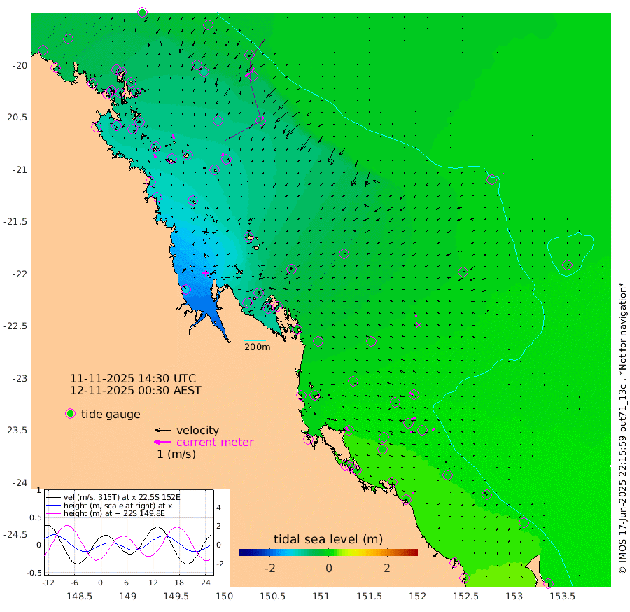 26cm/s 161T +10cm/s rms + 2cm/s 5T. Brampton I 18m 28cm/s 171T +9cm/s rms + 6cm/s 66T. Wigton I 38m 16cm/s -161T +7cm/s rms + 8cm/s 141T. Tern I 47m 32cm/s -155T +7cm/s rms + 12cm/s 54T. N Bugatti Rf 64m 31cm/s -142T +3cm/s rms + 13cm/s 178T. W Bugatti Rf 70m 14cm/s -156T +3cm/s rms + 3cm/s -130T. Creal Rf 69m 30cm/s -67T +7cm/s rms + 4cm/s 2T. North Rf 62m 29cm/s -37T +9cm/s rms + 2cm/s -56T. Cape Capricorn 26m 6cm/s -71T +5cm/s rms + 3cm/s 166T. L Musgrave I 42m 13cm/s -66T +9cm/s rms + 1cm/s -142T. Round Hill Hd 26m 4cm/s -153T +41cm/s rms + 48cm/s 116T. GBRELR 305m 10cm/s -75T +7cm/s rms + 6cm/s 123T. GBRCCH 92m 35cm/s -103T +8cm/s rms + 3cm/s -33T. GBRHIN 45m 20cm/s -93T +4cm/s rms + 2cm/s 41T. GBRHIS 46m 19cm/s -130T +16cm/s rms + 4cm/s -22T. GBROTE 59m -36cm Bell Cay -45cm Holbourne I -80cm Tern I -51cm Bugatti Rf -62cm Creal Rf -41cm White Tip I 2cm North Rf 10cm Rundle I 7cm L Musgrave I -2cm Saumarez Reef -27cm Kennedy Reef -32cm Unnamed Reef No. 2 -53cm Abbot Point -58cm Bowen -70cm Tideway Reef -63cm Hayman Island -86cm Square Reef -64cm Double Bay -86cm Molle Island -75cm Cid Harbour -61cm Hook Island -71cm Border Island -77cm Haslewood Island -75cm Shute Harbour -86cm Thomas Island -87cm Credlin Reef -101cm East Repulse Island -90cm Blacksmith Island -103cm Laguna Quays -95cm Carlisle Island (Off) -101cm St. Bees Island -94cm Scawfell Island -91cm Penrith Island -103cm Mackay Outer Harbour -104cm Hay Point -97cm Prudhoe Island -57cm Middle Island (Percy Isles) -24cm Gannet Cay -12cm Elusive Reef -126cm Mcewin Islet -59cm Mumford Island -75cm Osborn Island -76cm Marquis Island -69cm Reef Point -44cm High Peak Island -14cm Port Clinton -13cm Peaked Island 6cm Karamea Bank 6cm Johnson Patch - NW 1cm Rosslyn Bay -1cm Middle Island (Keppel Isles) 1cm Port Alma 7cm Heron Island 13cm One Tree Islet 15cm Polmaise Reef -2cm Tryon Island 7cm Rock Cod Shoal 9cm Gatcombe Head 11cm Gladstone 15cm South Trees (Storm Surge) 20cm Clews Point 16cm Round Hill Head 9cm Lady Elliot Island 9cm Breaksea Spit 22cm Bundaberg (Burnett Heads) 23cm Elliot Heads 0cm Waddy Point (Fraser Island)