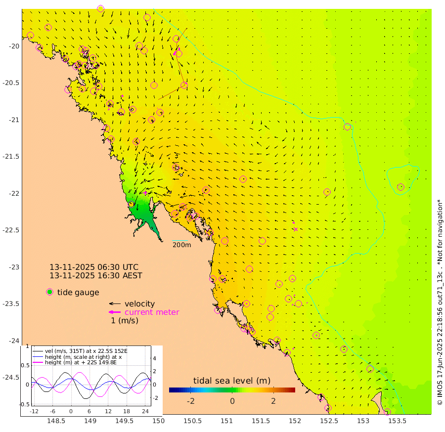 13cm/s -164T +10cm/s rms + 2cm/s 5T. Brampton I 18m 18cm/s 169T +9cm/s rms + 6cm/s 66T. Wigton I 38m 2cm/s -104T +7cm/s rms + 8cm/s 141T. Tern I 47m 23cm/s -176T +7cm/s rms + 12cm/s 54T. N Bugatti Rf 64m 36cm/s -153T +3cm/s rms + 13cm/s 178T. W Bugatti Rf 70m 11cm/s 176T +3cm/s rms + 3cm/s -130T. Creal Rf 69m 9cm/s -178T +7cm/s rms + 4cm/s 2T. North Rf 62m 8cm/s 16T +9cm/s rms + 2cm/s -56T. Cape Capricorn 26m 10cm/s 115T +5cm/s rms + 3cm/s 166T. L Musgrave I 42m 10cm/s 116T +9cm/s rms + 1cm/s -142T. Round Hill Hd 26m 1cm/s -88T +41cm/s rms + 48cm/s 116T. GBRELR 305m 17cm/s -72T +7cm/s rms + 6cm/s 123T. GBRCCH 92m 7cm/s 135T +8cm/s rms + 3cm/s -33T. GBRHIN 45m 5cm/s 107T +4cm/s rms + 2cm/s 41T. GBRHIS 46m 5cm/s 156T +16cm/s rms + 4cm/s -22T. GBROTE 59m 116cm Bell Cay 107cm Holbourne I 129cm Tern I 96cm Bugatti Rf 104cm Creal Rf 91cm White Tip I 92cm North Rf 115cm Rundle I 65cm L Musgrave I 55cm Saumarez Reef 92cm Kennedy Reef 95cm Unnamed Reef No. 2 104cm Abbot Point 105cm Bowen 103cm Tideway Reef 109cm Hayman Island 117cm Square Reef 129cm Double Bay 126cm Molle Island 99cm Cid Harbour 112cm Hook Island 96cm Border Island 99cm Haslewood Island 109cm Shute Harbour 107cm Thomas Island 121cm Credlin Reef 118cm East Repulse Island 101cm Blacksmith Island 114cm Laguna Quays 127cm Carlisle Island (Off) 122cm St. Bees Island 111cm Scawfell Island 136cm Penrith Island 130cm Mackay Outer Harbour 138cm Hay Point 147cm Prudhoe Island 158cm Middle Island (Percy Isles) 110cm Gannet Cay 66cm Elusive Reef 140cm Mcewin Islet 162cm Mumford Island 152cm Osborn Island 158cm Marquis Island 145cm Reef Point 134cm High Peak Island 149cm Port Clinton 138cm Peaked Island 92cm Karamea Bank 118cm Johnson Patch - NW 136cm Rosslyn Bay 138cm Middle Island (Keppel Isles) 149cm Port Alma 89cm Heron Island 96cm One Tree Islet 96cm Polmaise Reef 90cm Tryon Island 101cm Rock Cod Shoal 109cm Gatcombe Head 120cm Gladstone 114cm South Trees (Storm Surge) 85cm Clews Point 77cm Round Hill Head 61cm Lady Elliot Island 58cm Breaksea Spit 82cm Bundaberg (Burnett Heads) 80cm Elliot Heads 46cm Waddy Point (Fraser Island)