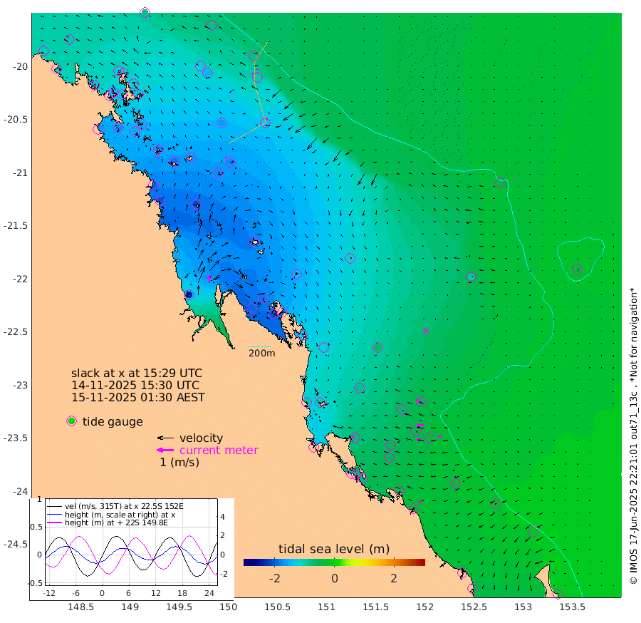 10cm/s 148T +10cm/s rms + 2cm/s 5T. Brampton I 18m 6cm/s -149T +9cm/s rms + 6cm/s 66T. Wigton I 38m 15cm/s -147T +7cm/s rms + 8cm/s 141T. Tern I 47m 10cm/s -117T +7cm/s rms + 12cm/s 54T. N Bugatti Rf 64m 9cm/s -58T +3cm/s rms + 13cm/s 178T. W Bugatti Rf 70m 11cm/s -112T +3cm/s rms + 3cm/s -130T. Creal Rf 69m 32cm/s -68T +7cm/s rms + 4cm/s 2T. North Rf 62m 25cm/s -49T +9cm/s rms + 2cm/s -56T. Cape Capricorn 26m 8cm/s -78T +5cm/s rms + 3cm/s 166T. L Musgrave I 42m 17cm/s -69T +9cm/s rms + 1cm/s -142T. Round Hill Hd 26m 3cm/s -107T +41cm/s rms + 48cm/s 116T. GBRELR 305m 3cm/s -55T +7cm/s rms + 6cm/s 123T. GBRCCH 92m 39cm/s -91T +8cm/s rms + 3cm/s -33T. GBRHIN 45m 27cm/s -89T +4cm/s rms + 2cm/s 41T. GBRHIS 46m 23cm/s -99T +16cm/s rms + 4cm/s -22T. GBROTE 59m -119cm Bell Cay -101cm Holbourne I -174cm Tern I -101cm Bugatti Rf -129cm Creal Rf -82cm White Tip I -53cm North Rf -67cm Rundle I -25cm L Musgrave I -28cm Saumarez Reef -76cm Kennedy Reef -75cm Unnamed Reef No. 2 -103cm Abbot Point -110cm Bowen -124cm Tideway Reef -117cm Hayman Island -150cm Square Reef -135cm Double Bay -142cm Molle Island -132cm Cid Harbour -119cm Hook Island -119cm Border Island -132cm Haslewood Island -136cm Shute Harbour -157cm Thomas Island -161cm Credlin Reef -174cm East Repulse Island -158cm Blacksmith Island -176cm Laguna Quays -174cm Carlisle Island (Off) -187cm St. Bees Island -165cm Scawfell Island -177cm Penrith Island -195cm Mackay Outer Harbour -205cm Hay Point -209cm Prudhoe Island -186cm Middle Island (Percy Isles) -102cm Gannet Cay -34cm Elusive Reef -237cm Mcewin Islet -183cm Mumford Island -194cm Osborn Island -202cm Marquis Island -185cm Reef Point -147cm High Peak Island -128cm Port Clinton -120cm Peaked Island -51cm Karamea Bank -78cm Johnson Patch - NW -100cm Rosslyn Bay -103cm Middle Island (Keppel Isles) -115cm Port Alma -46cm Heron Island -41cm One Tree Islet -49cm Polmaise Reef -57cm Tryon Island -55cm Rock Cod Shoal -66cm Gatcombe Head -79cm Gladstone -70cm South Trees (Storm Surge) -33cm Clews Point -31cm Round Hill Head -20cm Lady Elliot Island -15cm Breaksea Spit -31cm Bundaberg (Burnett Heads) -31cm Elliot Heads -14cm Waddy Point (Fraser Island)