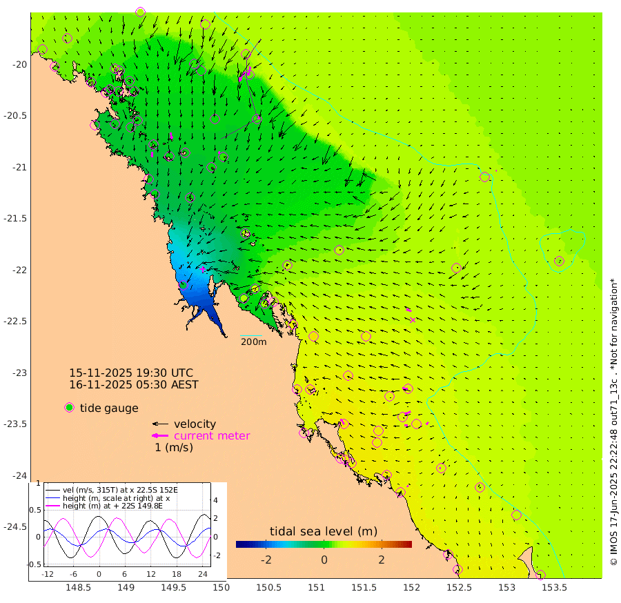 33cm/s -180T +10cm/s rms + 2cm/s 5T. Brampton I 18m 41cm/s 171T +9cm/s rms + 6cm/s 66T. Wigton I 38m 16cm/s -149T +7cm/s rms + 8cm/s 141T. Tern I 47m 57cm/s -167T +7cm/s rms + 12cm/s 54T. N Bugatti Rf 64m 73cm/s -148T +3cm/s rms + 13cm/s 178T. W Bugatti Rf 70m 26cm/s -167T +3cm/s rms + 3cm/s -130T. Creal Rf 69m 36cm/s -80T +7cm/s rms + 4cm/s 2T. North Rf 62m 39cm/s -27T +9cm/s rms + 2cm/s -56T. Cape Capricorn 26m 9cm/s -106T +5cm/s rms + 3cm/s 166T. L Musgrave I 42m 8cm/s -69T +9cm/s rms + 1cm/s -142T. Round Hill Hd 26m 5cm/s -116T +41cm/s rms + 48cm/s 116T. GBRELR 305m 32cm/s -67T +7cm/s rms + 6cm/s 123T. GBRCCH 92m 38cm/s -116T +8cm/s rms + 3cm/s -33T. GBRHIN 45m 18cm/s -95T +4cm/s rms + 2cm/s 41T. GBRHIS 46m 19cm/s -141T +16cm/s rms + 4cm/s -22T. GBROTE 59m 57cm Bell Cay 41cm Holbourne I 24cm Tern I 30cm Bugatti Rf 23cm Creal Rf 38cm White Tip I 81cm North Rf 106cm Rundle I 66cm L Musgrave I 43cm Saumarez Reef 56cm Kennedy Reef 50cm Unnamed Reef No. 2 38cm Abbot Point 32cm Bowen 19cm Tideway Reef 38cm Hayman Island 16cm Square Reef 32cm Double Bay 11cm Molle Island 13cm Cid Harbour 29cm Hook Island 10cm Border Island 1cm Haslewood Island 16cm Shute Harbour 4cm Thomas Island 18cm Credlin Reef -1cm East Repulse Island -4cm Blacksmith Island -12cm Laguna Quays 4cm Carlisle Island (Off) 3cm St. Bees Island -2cm Scawfell Island 19cm Penrith Island 1cm Mackay Outer Harbour 5cm Hay Point 18cm Prudhoe Island 55cm Middle Island (Percy Isles) 58cm Gannet Cay 48cm Elusive Reef -36cm Mcewin Islet 78cm Mumford Island 53cm Osborn Island 49cm Marquis Island 50cm Reef Point 57cm High Peak Island 98cm Port Clinton 106cm Peaked Island 86cm Karamea Bank 98cm Johnson Patch - NW 110cm Rosslyn Bay 113cm Middle Island (Keppel Isles) 114cm Port Alma 79cm Heron Island 98cm One Tree Islet 96cm Polmaise Reef 83cm Tryon Island 91cm Rock Cod Shoal 93cm Gatcombe Head 101cm Gladstone 102cm South Trees (Storm Surge) 97cm Clews Point 80cm Round Hill Head 62cm Lady Elliot Island 65cm Breaksea Spit 84cm Bundaberg (Burnett Heads) 82cm Elliot Heads 47cm Waddy Point (Fraser Island)