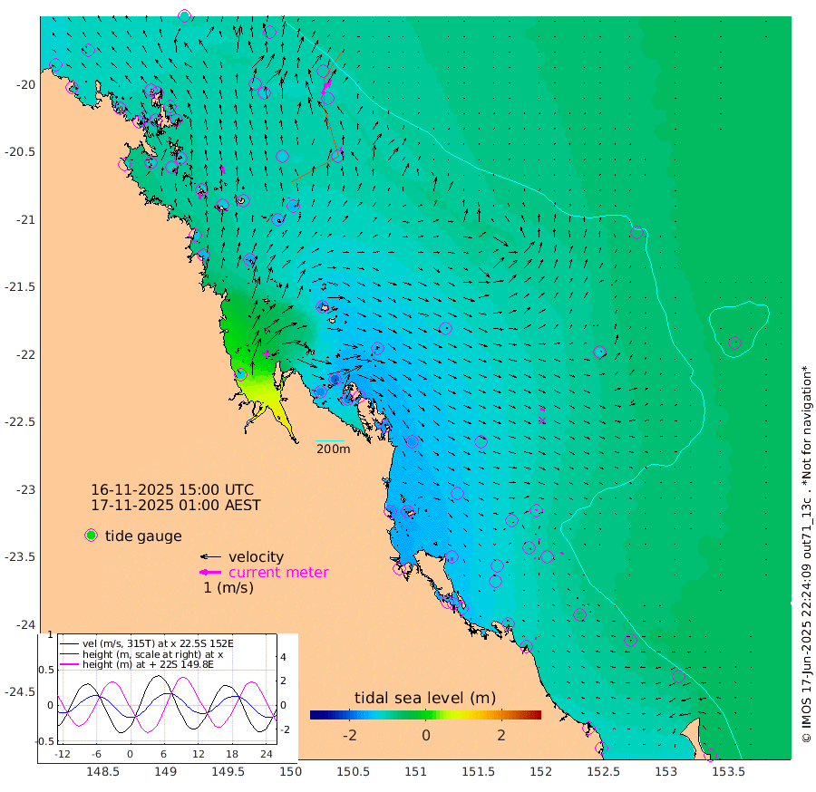21cm/s 2T +10cm/s rms + 2cm/s 5T. Brampton I 18m 32cm/s -14T +9cm/s rms + 6cm/s 66T. Wigton I 38m 5cm/s 14T +7cm/s rms + 8cm/s 141T. Tern I 47m 41cm/s 7T +7cm/s rms + 12cm/s 54T. N Bugatti Rf 64m 54cm/s 26T +3cm/s rms + 13cm/s 178T. W Bugatti Rf 70m 18cm/s -5T +3cm/s rms + 3cm/s -130T. Creal Rf 69m 6cm/s 38T +7cm/s rms + 4cm/s 2T. North Rf 62m 13cm/s 175T +9cm/s rms + 2cm/s -56T. Cape Capricorn 26m 5cm/s -27T +5cm/s rms + 3cm/s 166T. L Musgrave I 42m 7cm/s -61T +9cm/s rms + 1cm/s -142T. Round Hill Hd 26m 1cm/s 17T +41cm/s rms + 48cm/s 116T. GBRELR 305m 21cm/s 106T +7cm/s rms + 6cm/s 123T. GBRCCH 92m 8cm/s -10T +8cm/s rms + 3cm/s -33T. GBRHIN 45m 6cm/s -65T +4cm/s rms + 2cm/s 41T. GBRHIS 46m 12cm/s -29T +16cm/s rms + 4cm/s -22T. GBROTE 59m -130cm Bell Cay -109cm Holbourne I -141cm Tern I -101cm Bugatti Rf -113cm Creal Rf -95cm White Tip I -105cm North Rf -134cm Rundle I -74cm L Musgrave I -64cm Saumarez Reef -108cm Kennedy Reef -99cm Unnamed Reef No. 2 -107cm Abbot Point -107cm Bowen -106cm Tideway Reef -113cm Hayman Island -125cm Square Reef -120cm Double Bay -121cm Molle Island -108cm Cid Harbour -110cm Hook Island -97cm Border Island -97cm Haslewood Island -111cm Shute Harbour -114cm Thomas Island -126cm Credlin Reef -116cm East Repulse Island -112cm Blacksmith Island -114cm Laguna Quays -122cm Carlisle Island (Off) -125cm St. Bees Island -110cm Scawfell Island -140cm Penrith Island -134cm Mackay Outer Harbour -144cm Hay Point -156cm Prudhoe Island -178cm Middle Island (Percy Isles) -119cm Gannet Cay -68cm Elusive Reef -125cm Mcewin Islet -190cm Mumford Island -175cm Osborn Island -173cm Marquis Island -166cm Reef Point -148cm High Peak Island -168cm Port Clinton -168cm Peaked Island -107cm Karamea Bank -141cm Johnson Patch - NW -160cm Rosslyn Bay -162cm Middle Island (Keppel Isles) -175cm Port Alma -101cm Heron Island -112cm One Tree Islet -117cm Polmaise Reef -112cm Tryon Island -113cm Rock Cod Shoal -126cm Gatcombe Head -140cm Gladstone -135cm South Trees (Storm Surge) -106cm Clews Point -91cm Round Hill Head -68cm Lady Elliot Island -67cm Breaksea Spit -96cm Bundaberg (Burnett Heads) -97cm Elliot Heads -50cm Waddy Point (Fraser Island)
