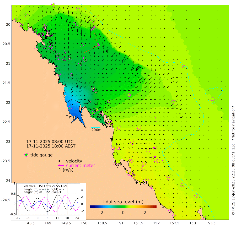 35cm/s 166T +10cm/s rms + 2cm/s 5T. Brampton I 18m 42cm/s 171T +9cm/s rms + 6cm/s 66T. Wigton I 38m 20cm/s -161T +7cm/s rms + 8cm/s 141T. Tern I 47m 56cm/s -161T +7cm/s rms + 12cm/s 54T. N Bugatti Rf 64m 63cm/s -148T +3cm/s rms + 13cm/s 178T. W Bugatti Rf 70m 26cm/s -169T +3cm/s rms + 3cm/s -130T. Creal Rf 69m 33cm/s -80T +7cm/s rms + 4cm/s 2T. North Rf 62m 33cm/s -32T +9cm/s rms + 2cm/s -56T. Cape Capricorn 26m 8cm/s -101T +5cm/s rms + 3cm/s 166T. L Musgrave I 42m 8cm/s -72T +9cm/s rms + 1cm/s -142T. Round Hill Hd 26m 4cm/s -149T +41cm/s rms + 48cm/s 116T. GBRELR 305m 24cm/s -75T +7cm/s rms + 6cm/s 123T. GBRCCH 92m 35cm/s -112T +8cm/s rms + 3cm/s -33T. GBRHIN 45m 20cm/s -96T +4cm/s rms + 2cm/s 41T. GBRHIS 46m 21cm/s -131T +16cm/s rms + 4cm/s -22T. GBROTE 59m 38cm Bell Cay 36cm Holbourne I 2cm Tern I 25cm Bugatti Rf 12cm Creal Rf 36cm White Tip I 67cm North Rf 88cm Rundle I 56cm L Musgrave I 48cm Saumarez Reef 48cm Kennedy Reef 46cm Unnamed Reef No. 2 37cm Abbot Point 30cm Bowen 12cm Tideway Reef 28cm Hayman Island 13cm Square Reef 21cm Double Bay 20cm Molle Island 11cm Cid Harbour 16cm Hook Island 7cm Border Island 1cm Haslewood Island 9cm Shute Harbour -11cm Thomas Island 0cm Credlin Reef -21cm East Repulse Island -12cm Blacksmith Island -26cm Laguna Quays -13cm Carlisle Island (Off) -27cm St. Bees Island -14cm Scawfell Island 6cm Penrith Island -23cm Mackay Outer Harbour -22cm Hay Point -14cm Prudhoe Island 27cm Middle Island (Percy Isles) 41cm Gannet Cay 42cm Elusive Reef -87cm Mcewin Islet 51cm Mumford Island 21cm Osborn Island 12cm Marquis Island 21cm Reef Point 36cm High Peak Island 67cm Port Clinton 78cm Peaked Island 70cm Karamea Bank 81cm Johnson Patch - NW 87cm Rosslyn Bay 89cm Middle Island (Keppel Isles) 90cm Port Alma 70cm Heron Island 82cm One Tree Islet 83cm Polmaise Reef 66cm Tryon Island 77cm Rock Cod Shoal 81cm Gatcombe Head 83cm Gladstone 86cm South Trees (Storm Surge) 83cm Clews Point 69cm Round Hill Head 53cm Lady Elliot Island 51cm Breaksea Spit 76cm Bundaberg (Burnett Heads) 81cm Elliot Heads 37cm Waddy Point (Fraser Island)