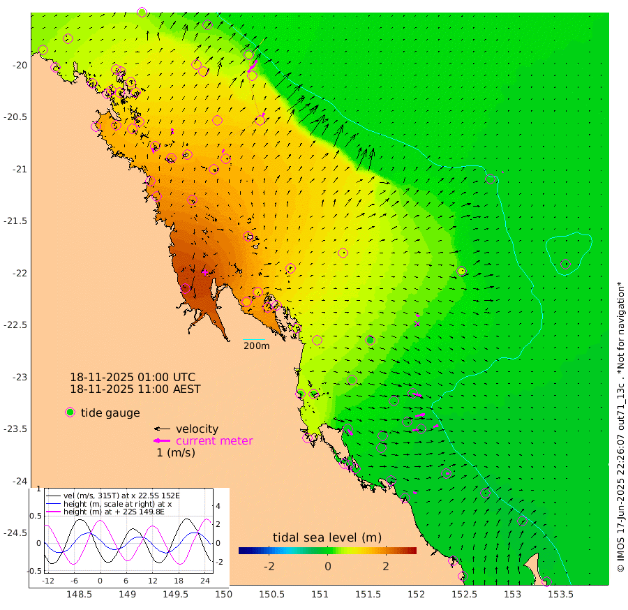 33cm/s -19T +10cm/s rms + 2cm/s 5T. Brampton I 18m 33cm/s -3T +9cm/s rms + 6cm/s 66T. Wigton I 38m 25cm/s 23T +7cm/s rms + 8cm/s 141T. Tern I 47m 49cm/s 28T +7cm/s rms + 12cm/s 54T. N Bugatti Rf 64m 48cm/s 39T +3cm/s rms + 13cm/s 178T. W Bugatti Rf 70m 24cm/s 23T +3cm/s rms + 3cm/s -130T. Creal Rf 69m 56cm/s 107T +7cm/s rms + 4cm/s 2T. North Rf 62m 44cm/s 141T +9cm/s rms + 2cm/s -56T. Cape Capricorn 26m 19cm/s 96T +5cm/s rms + 3cm/s 166T. L Musgrave I 42m 22cm/s 113T +9cm/s rms + 1cm/s -142T. Round Hill Hd 26m 6cm/s 52T +41cm/s rms + 48cm/s 116T. GBRELR 305m 22cm/s 111T +7cm/s rms + 6cm/s 123T. GBRCCH 92m 60cm/s 77T +8cm/s rms + 3cm/s -33T. GBRHIN 45m 37cm/s 90T +4cm/s rms + 2cm/s 41T. GBRHIS 46m 32cm/s 74T +16cm/s rms + 4cm/s -22T. GBROTE 59m 77cm Bell Cay 65cm Holbourne I 147cm Tern I 72cm Bugatti Rf 103cm Creal Rf 48cm White Tip I 1cm North Rf -2cm Rundle I -14cm L Musgrave I -5cm Saumarez Reef 43cm Kennedy Reef 34cm Unnamed Reef No. 2 60cm Abbot Point 70cm Bowen 97cm Tideway Reef 76cm Hayman Island 120cm Square Reef 96cm Double Bay 108cm Molle Island 101cm Cid Harbour 95cm Hook Island 97cm Border Island 106cm Haslewood Island 108cm Shute Harbour 139cm Thomas Island 133cm Credlin Reef 155cm East Repulse Island 140cm Blacksmith Island 165cm Laguna Quays 150cm Carlisle Island (Off) 170cm St. Bees Island 140cm Scawfell Island 143cm Penrith Island 180cm Mackay Outer Harbour 187cm Hay Point 187cm Prudhoe Island 149cm Middle Island (Percy Isles) 62cm Gannet Cay 5cm Elusive Reef 266cm Mcewin Islet 122cm Mumford Island 148cm Osborn Island 159cm Marquis Island 138cm Reef Point 100cm High Peak Island 69cm Port Clinton 49cm Peaked Island -3cm Karamea Bank 20cm Johnson Patch - NW 28cm Rosslyn Bay 25cm Middle Island (Keppel Isles) 40cm Port Alma -6cm Heron Island -15cm One Tree Islet -10cm Polmaise Reef 8cm Tryon Island -6cm Rock Cod Shoal 4cm Gatcombe Head 16cm Gladstone 5cm South Trees (Storm Surge) -23cm Clews Point -16cm Round Hill Head -15cm Lady Elliot Island -16cm Breaksea Spit -18cm Bundaberg (Burnett Heads) -23cm Elliot Heads -12cm Waddy Point (Fraser Island)