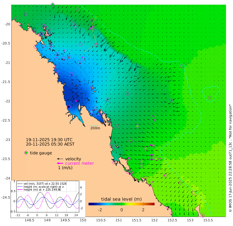 26cm/s 175T +10cm/s rms + 2cm/s 5T. Brampton I 18m 27cm/s -179T +9cm/s rms + 6cm/s 66T. Wigton I 38m 23cm/s -146T +7cm/s rms + 8cm/s 141T. Tern I 47m 43cm/s -155T +7cm/s rms + 12cm/s 54T. N Bugatti Rf 64m 48cm/s -141T +3cm/s rms + 13cm/s 178T. W Bugatti Rf 70m 22cm/s -151T +3cm/s rms + 3cm/s -130T. Creal Rf 69m 60cm/s -75T +7cm/s rms + 4cm/s 2T. North Rf 62m 45cm/s -39T +9cm/s rms + 2cm/s -56T. Cape Capricorn 26m 23cm/s -94T +5cm/s rms + 3cm/s 166T. L Musgrave I 42m 21cm/s -72T +9cm/s rms + 1cm/s -142T. Round Hill Hd 26m 7cm/s -99T +41cm/s rms + 48cm/s 116T. GBRELR 305m 31cm/s -64T +7cm/s rms + 6cm/s 123T. GBRCCH 92m 64cm/s -100T +8cm/s rms + 3cm/s -33T. GBRHIN 45m 40cm/s -91T +4cm/s rms + 2cm/s 41T. GBRHIS 46m 34cm/s -106T +16cm/s rms + 4cm/s -22T. GBROTE 59m -62cm Bell Cay -53cm Holbourne I -131cm Tern I -53cm Bugatti Rf -87cm Creal Rf -29cm White Tip I 19cm North Rf 18cm Rundle I 34cm L Musgrave I 19cm Saumarez Reef -31cm Kennedy Reef -15cm Unnamed Reef No. 2 -43cm Abbot Point -54cm Bowen -78cm Tideway Reef -57cm Hayman Island -102cm Square Reef -76cm Double Bay -94cm Molle Island -82cm Cid Harbour -77cm Hook Island -82cm Border Island -90cm Haslewood Island -90cm Shute Harbour -119cm Thomas Island -110cm Credlin Reef -127cm East Repulse Island -120cm Blacksmith Island -147cm Laguna Quays -129cm Carlisle Island (Off) -136cm St. Bees Island -118cm Scawfell Island -128cm Penrith Island -161cm Mackay Outer Harbour -169cm Hay Point -171cm Prudhoe Island -143cm Middle Island (Percy Isles) -53cm Gannet Cay 18cm Elusive Reef -252cm Mcewin Islet -114cm Mumford Island -135cm Osborn Island -141cm Marquis Island -122cm Reef Point -88cm High Peak Island -58cm Port Clinton -33cm Peaked Island 25cm Karamea Bank -6cm Johnson Patch - NW -14cm Rosslyn Bay -9cm Middle Island (Keppel Isles) -31cm Port Alma 25cm Heron Island 34cm One Tree Islet 25cm Polmaise Reef 19cm Tryon Island 28cm Rock Cod Shoal 7cm Gatcombe Head -6cm Gladstone 6cm South Trees (Storm Surge) 39cm Clews Point 33cm Round Hill Head 37cm Lady Elliot Island 42cm Breaksea Spit 29cm Bundaberg (Burnett Heads) 34cm Elliot Heads 37cm Waddy Point (Fraser Island)