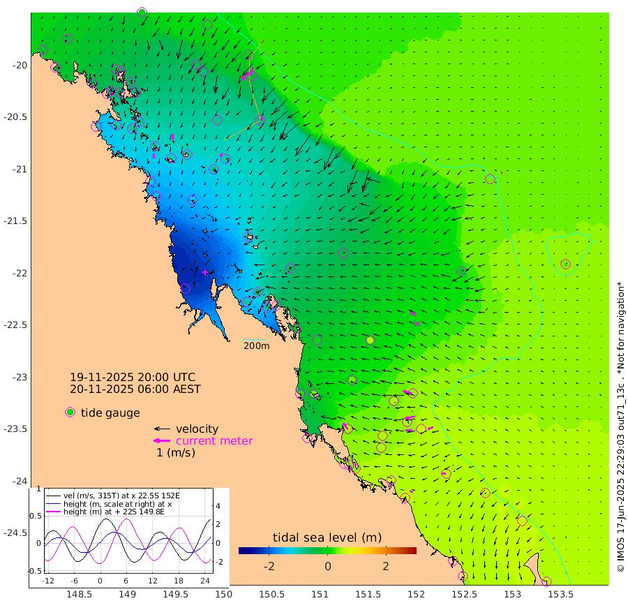31cm/s 176T +10cm/s rms + 2cm/s 5T. Brampton I 18m 35cm/s 177T +9cm/s rms + 6cm/s 66T. Wigton I 38m 24cm/s -146T +7cm/s rms + 8cm/s 141T. Tern I 47m 51cm/s -158T +7cm/s rms + 12cm/s 54T. N Bugatti Rf 64m 59cm/s -143T +3cm/s rms + 13cm/s 178T. W Bugatti Rf 70m 25cm/s -157T +3cm/s rms + 3cm/s -130T. Creal Rf 69m 60cm/s -77T +7cm/s rms + 4cm/s 2T. North Rf 62m 47cm/s -37T +9cm/s rms + 2cm/s -56T. Cape Capricorn 26m 22cm/s -97T +5cm/s rms + 3cm/s 166T. L Musgrave I 42m 19cm/s -73T +9cm/s rms + 1cm/s -142T. Round Hill Hd 26m 7cm/s -102T +41cm/s rms + 48cm/s 116T. GBRELR 305m 36cm/s -66T +7cm/s rms + 6cm/s 123T. GBRCCH 92m 64cm/s -103T +8cm/s rms + 3cm/s -33T. GBRHIN 45m 39cm/s -92T +4cm/s rms + 2cm/s 41T. GBRHIS 46m 34cm/s -111T +16cm/s rms + 4cm/s -22T. GBROTE 59m -29cm Bell Cay -29cm Holbourne I -96cm Tern I -30cm Bugatti Rf -59cm Creal Rf -7cm White Tip I 46cm North Rf 52cm Rundle I 54cm L Musgrave I 36cm Saumarez Reef -8cm Kennedy Reef 7cm Unnamed Reef No. 2 -21cm Abbot Point -31cm Bowen -54cm Tideway Reef -32cm Hayman Island -72cm Square Reef -52cm Double Bay -69cm Molle Island -56cm Cid Harbour -53cm Hook Island -58cm Border Island -68cm Haslewood Island -65cm Shute Harbour -92cm Thomas Island -79cm Credlin Reef -100cm East Repulse Island -91cm Blacksmith Island -120cm Laguna Quays -100cm Carlisle Island (Off) -103cm St. Bees Island -88cm Scawfell Island -94cm Penrith Island -128cm Mackay Outer Harbour -133cm Hay Point -133cm Prudhoe Island -98cm Middle Island (Percy Isles) -23cm Gannet Cay 33cm Elusive Reef -218cm Mcewin Islet -63cm Mumford Island -88cm Osborn Island -94cm Marquis Island -78cm Reef Point -51cm High Peak Island -17cm Port Clinton 9cm Peaked Island 51cm Karamea Bank 30cm Johnson Patch - NW 27cm Rosslyn Bay 32cm Middle Island (Keppel Isles) 14cm Port Alma 51cm Heron Island 63cm One Tree Islet 55cm Polmaise Reef 48cm Tryon Island 56cm Rock Cod Shoal 39cm Gatcombe Head 31cm Gladstone 41cm South Trees (Storm Surge) 66cm Clews Point 57cm Round Hill Head 55cm Lady Elliot Island 60cm Breaksea Spit 55cm Bundaberg (Burnett Heads) 61cm Elliot Heads 50cm Waddy Point (Fraser Island)