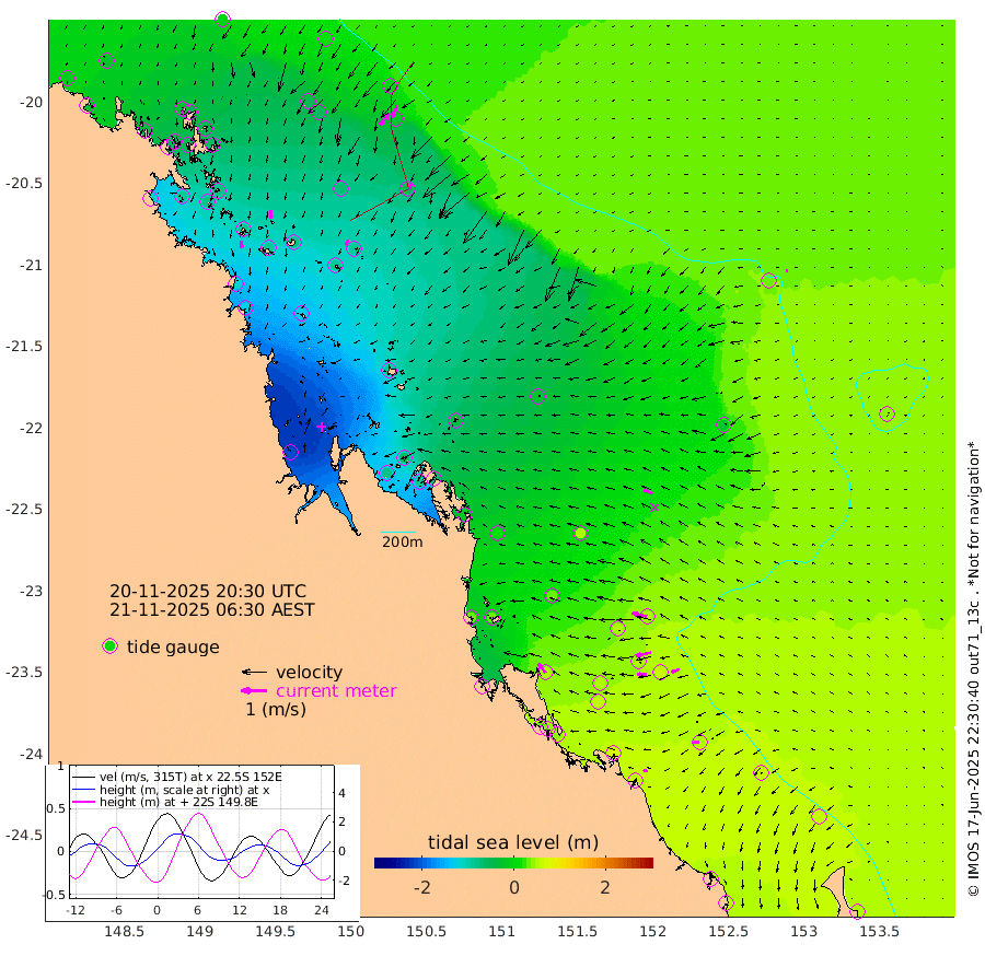 29cm/s 176T +10cm/s rms + 2cm/s 5T. Brampton I 18m 34cm/s 177T +9cm/s rms + 6cm/s 66T. Wigton I 38m 23cm/s -147T +7cm/s rms + 8cm/s 141T. Tern I 47m 49cm/s -158T +7cm/s rms + 12cm/s 54T. N Bugatti Rf 64m 57cm/s -144T +3cm/s rms + 13cm/s 178T. W Bugatti Rf 70m 24cm/s -159T +3cm/s rms + 3cm/s -130T. Creal Rf 69m 59cm/s -76T +7cm/s rms + 4cm/s 2T. North Rf 62m 45cm/s -37T +9cm/s rms + 2cm/s -56T. Cape Capricorn 26m 23cm/s -98T +5cm/s rms + 3cm/s 166T. L Musgrave I 42m 18cm/s -74T +9cm/s rms + 1cm/s -142T. Round Hill Hd 26m 7cm/s -102T +41cm/s rms + 48cm/s 116T. GBRELR 305m 36cm/s -66T +7cm/s rms + 6cm/s 123T. GBRCCH 92m 62cm/s -103T +8cm/s rms + 3cm/s -33T. GBRHIN 45m 37cm/s -92T +4cm/s rms + 2cm/s 41T. GBRHIS 46m 33cm/s -110T +16cm/s rms + 4cm/s -22T. GBROTE 59m -24cm Bell Cay -26cm Holbourne I -87cm Tern I -24cm Bugatti Rf -52cm Creal Rf -4cm White Tip I 49cm North Rf 54cm Rundle I 55cm L Musgrave I 39cm Saumarez Reef -7cm Kennedy Reef 11cm Unnamed Reef No. 2 -15cm Abbot Point -25cm Bowen -47cm Tideway Reef -27cm Hayman Island -64cm Square Reef -45cm Double Bay -62cm Molle Island -48cm Cid Harbour -48cm Hook Island -52cm Border Island -59cm Haslewood Island -58cm Shute Harbour -83cm Thomas Island -69cm Credlin Reef -88cm East Repulse Island -82cm Blacksmith Island -110cm Laguna Quays -89cm Carlisle Island (Off) -92cm St. Bees Island -79cm Scawfell Island -86cm Penrith Island -117cm Mackay Outer Harbour -123cm Hay Point -123cm Prudhoe Island -92cm Middle Island (Percy Isles) -19cm Gannet Cay 35cm Elusive Reef -209cm Mcewin Islet -59cm Mumford Island -81cm Osborn Island -85cm Marquis Island -69cm Reef Point -44cm High Peak Island -13cm Port Clinton 14cm Peaked Island 54cm Karamea Bank 32cm Johnson Patch - NW 31cm Rosslyn Bay 37cm Middle Island (Keppel Isles) 18cm Port Alma 54cm Heron Island 63cm One Tree Islet 56cm Polmaise Reef 52cm Tryon Island 60cm Rock Cod Shoal 41cm Gatcombe Head 33cm Gladstone 44cm South Trees (Storm Surge) 66cm Clews Point 58cm Round Hill Head 57cm Lady Elliot Island 61cm Breaksea Spit 55cm Bundaberg (Burnett Heads) 62cm Elliot Heads 52cm Waddy Point (Fraser Island)