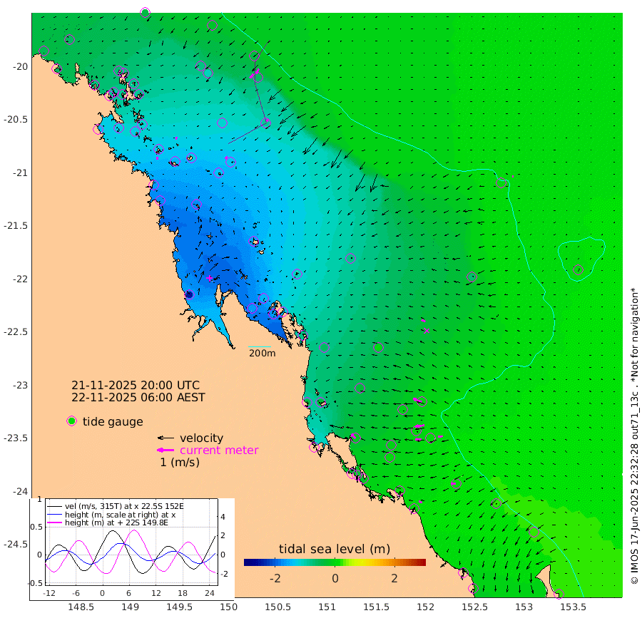 17cm/s 176T +10cm/s rms + 2cm/s 5T. Brampton I 18m 16cm/s -174T +9cm/s rms + 6cm/s 66T. Wigton I 38m 18cm/s -148T +7cm/s rms + 8cm/s 141T. Tern I 47m 33cm/s -150T +7cm/s rms + 12cm/s 54T. N Bugatti Rf 64m 32cm/s -141T +3cm/s rms + 13cm/s 178T. W Bugatti Rf 70m 15cm/s -145T +3cm/s rms + 3cm/s -130T. Creal Rf 69m 54cm/s -72T +7cm/s rms + 4cm/s 2T. North Rf 62m 37cm/s -41T +9cm/s rms + 2cm/s -56T. Cape Capricorn 26m 24cm/s -93T +5cm/s rms + 3cm/s 166T. L Musgrave I 42m 20cm/s -71T +9cm/s rms + 1cm/s -142T. Round Hill Hd 26m 6cm/s -95T +41cm/s rms + 48cm/s 116T. GBRELR 305m 24cm/s -61T +7cm/s rms + 6cm/s 123T. GBRCCH 92m 55cm/s -99T +8cm/s rms + 3cm/s -33T. GBRHIN 45m 35cm/s -90T +4cm/s rms + 2cm/s 41T. GBRHIS 46m 28cm/s -98T +16cm/s rms + 4cm/s -22T. GBROTE 59m -78cm Bell Cay -62cm Holbourne I -136cm Tern I -61cm Bugatti Rf -93cm Creal Rf -39cm White Tip I -2cm North Rf -10cm Rundle I 16cm L Musgrave I 7cm Saumarez Reef -46cm Kennedy Reef -24cm Unnamed Reef No. 2 -50cm Abbot Point -59cm Bowen -79cm Tideway Reef -66cm Hayman Island -107cm Square Reef -76cm Double Bay -97cm Molle Island -88cm Cid Harbour -82cm Hook Island -87cm Border Island -91cm Haslewood Island -93cm Shute Harbour -117cm Thomas Island -113cm Credlin Reef -122cm East Repulse Island -125cm Blacksmith Island -144cm Laguna Quays -128cm Carlisle Island (Off) -141cm St. Bees Island -128cm Scawfell Island -139cm Penrith Island -161cm Mackay Outer Harbour -170cm Hay Point -170cm Prudhoe Island -158cm Middle Island (Percy Isles) -71cm Gannet Cay 7cm Elusive Reef -250cm Mcewin Islet -145cm Mumford Island -160cm Osborn Island -166cm Marquis Island -141cm Reef Point -105cm High Peak Island -82cm Port Clinton -58cm Peaked Island 6cm Karamea Bank -35cm Johnson Patch - NW -43cm Rosslyn Bay -36cm Middle Island (Keppel Isles) -63cm Port Alma 2cm Heron Island 6cm One Tree Islet -2cm Polmaise Reef -4cm Tryon Island 8cm Rock Cod Shoal -20cm Gatcombe Head -35cm Gladstone -23cm South Trees (Storm Surge) 11cm Clews Point 9cm Round Hill Head 20cm Lady Elliot Island 23cm Breaksea Spit 4cm Bundaberg (Burnett Heads) 5cm Elliot Heads 23cm Waddy Point (Fraser Island)