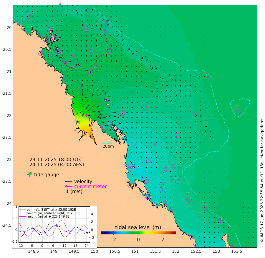 21cm/s -12T +10cm/s rms + 2cm/s 5T. Brampton I 18m 27cm/s -12T +9cm/s rms + 6cm/s 66T. Wigton I 38m 9cm/s 26T +7cm/s rms + 8cm/s 141T. Tern I 47m 19cm/s 8T +7cm/s rms + 12cm/s 54T. N Bugatti Rf 64m 30cm/s 32T +3cm/s rms + 13cm/s 178T. W Bugatti Rf 70m 15cm/s -3T +3cm/s rms + 3cm/s -130T. Creal Rf 69m 7cm/s 28T +7cm/s rms + 4cm/s 2T. North Rf 62m 8cm/s 151T +9cm/s rms + 2cm/s -56T. Cape Capricorn 26m 8cm/s -53T +5cm/s rms + 3cm/s 166T. L Musgrave I 42m 8cm/s -44T +9cm/s rms + 1cm/s -142T. Round Hill Hd 26m 2cm/s -6T +41cm/s rms + 48cm/s 116T. GBRELR 305m 16cm/s 94T +7cm/s rms + 6cm/s 123T. GBRCCH 92m 9cm/s 53T +8cm/s rms + 3cm/s -33T. GBRHIN 45m 5cm/s 38T +4cm/s rms + 2cm/s 41T. GBRHIS 46m 13cm/s 29T +16cm/s rms + 4cm/s -22T. GBROTE 59m -88cm Bell Cay -73cm Holbourne I -82cm Tern I -72cm Bugatti Rf -74cm Creal Rf -71cm White Tip I -86cm North Rf -104cm Rundle I -68cm L Musgrave I -70cm Saumarez Reef -72cm Kennedy Reef -73cm Unnamed Reef No. 2 -75cm Abbot Point -75cm Bowen -68cm Tideway Reef -73cm Hayman Island -85cm Square Reef -70cm Double Bay -77cm Molle Island -82cm Cid Harbour -69cm Hook Island -72cm Border Island -74cm Haslewood Island -72cm Shute Harbour -66cm Thomas Island -84cm Credlin Reef -74cm East Repulse Island -82cm Blacksmith Island -66cm Laguna Quays -82cm Carlisle Island (Off) -96cm St. Bees Island -90cm Scawfell Island -89cm Penrith Island -74cm Mackay Outer Harbour -77cm Hay Point -73cm Prudhoe Island -97cm Middle Island (Percy Isles) -81cm Gannet Cay -58cm Elusive Reef -49cm Mcewin Islet -119cm Mumford Island -114cm Osborn Island -122cm Marquis Island -112cm Reef Point -99cm High Peak Island -106cm Port Clinton -114cm Peaked Island -86cm Karamea Bank -105cm Johnson Patch - NW -117cm Rosslyn Bay -119cm Middle Island (Keppel Isles) -129cm Port Alma -90cm Heron Island -89cm One Tree Islet -93cm Polmaise Reef -94cm Tryon Island -96cm Rock Cod Shoal -99cm Gatcombe Head -112cm Gladstone -109cm South Trees (Storm Surge) -86cm Clews Point -83cm Round Hill Head -66cm Lady Elliot Island -62cm Breaksea Spit -90cm Bundaberg (Burnett Heads) -101cm Elliot Heads -49cm Waddy Point (Fraser Island)