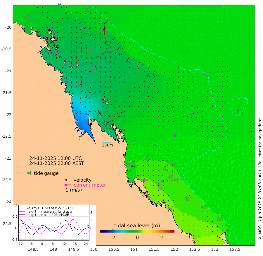 28cm/s 154T +10cm/s rms + 2cm/s 5T. Brampton I 18m 29cm/s 168T +9cm/s rms + 6cm/s 66T. Wigton I 38m 14cm/s -169T +7cm/s rms + 8cm/s 141T. Tern I 47m 27cm/s -159T +7cm/s rms + 12cm/s 54T. N Bugatti Rf 64m 28cm/s -149T +3cm/s rms + 13cm/s 178T. W Bugatti Rf 70m 16cm/s -177T +3cm/s rms + 3cm/s -130T. Creal Rf 69m 17cm/s -70T +7cm/s rms + 4cm/s 2T. North Rf 62m 19cm/s -40T +9cm/s rms + 2cm/s -56T. Cape Capricorn 26m 6cm/s -68T +5cm/s rms + 3cm/s 166T. L Musgrave I 42m 6cm/s -64T +9cm/s rms + 1cm/s -142T. Round Hill Hd 26m 5cm/s 171T +41cm/s rms + 48cm/s 116T. GBRELR 305m 8cm/s -94T +7cm/s rms + 6cm/s 123T. GBRCCH 92m 26cm/s -106T +8cm/s rms + 3cm/s -33T. GBRHIN 45m 15cm/s -98T +4cm/s rms + 2cm/s 41T. GBRHIS 46m 18cm/s -142T +16cm/s rms + 4cm/s -22T. GBROTE 59m -9cm Bell Cay -21cm Holbourne I -39cm Tern I -23cm Bugatti Rf -29cm Creal Rf -17cm White Tip I 13cm North Rf 24cm Rundle I 12cm L Musgrave I 15cm Saumarez Reef -12cm Kennedy Reef -11cm Unnamed Reef No. 2 -18cm Abbot Point -22cm Bowen -36cm Tideway Reef -28cm Hayman Island -40cm Square Reef -36cm Double Bay -48cm Molle Island -26cm Cid Harbour -32cm Hook Island -33cm Border Island -29cm Haslewood Island -35cm Shute Harbour -46cm Thomas Island -38cm Credlin Reef -44cm East Repulse Island -38cm Blacksmith Island -56cm Laguna Quays -39cm Carlisle Island (Off) -32cm St. Bees Island -30cm Scawfell Island -42cm Penrith Island -57cm Mackay Outer Harbour -57cm Hay Point -59cm Prudhoe Island -36cm Middle Island (Percy Isles) -6cm Gannet Cay -6cm Elusive Reef -96cm Mcewin Islet -18cm Mumford Island -25cm Osborn Island -18cm Marquis Island -18cm Reef Point -11cm High Peak Island 2cm Port Clinton 15cm Peaked Island 18cm Karamea Bank 13cm Johnson Patch - NW 22cm Rosslyn Bay 24cm Middle Island (Keppel Isles) 25cm Port Alma 18cm Heron Island 13cm One Tree Islet 20cm Polmaise Reef 12cm Tryon Island 23cm Rock Cod Shoal 22cm Gatcombe Head 27cm Gladstone 29cm South Trees (Storm Surge) 23cm Clews Point 22cm Round Hill Head 13cm Lady Elliot Island 6cm Breaksea Spit 29cm Bundaberg (Burnett Heads) 37cm Elliot Heads 1cm Waddy Point (Fraser Island)