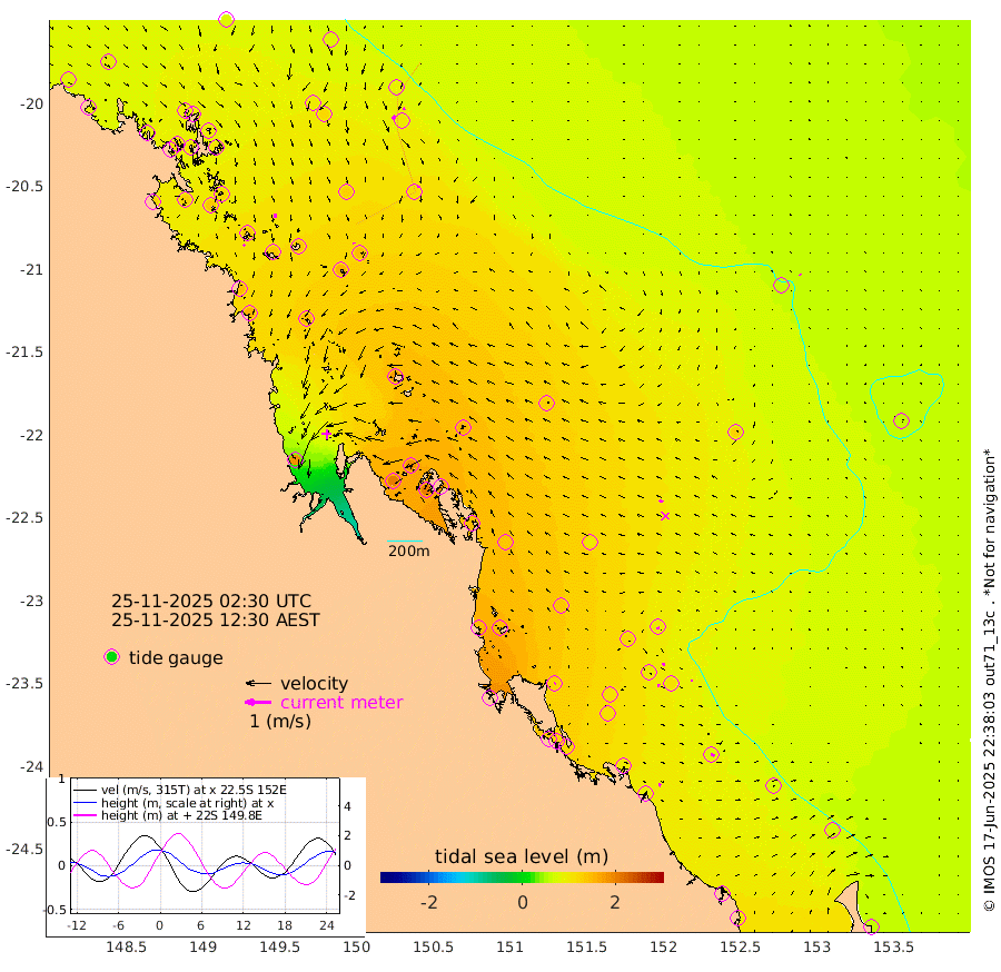10cm/s -133T +10cm/s rms + 2cm/s 5T. Brampton I 18m 17cm/s 173T +9cm/s rms + 6cm/s 66T. Wigton I 38m 4cm/s -14T +7cm/s rms + 8cm/s 141T. Tern I 47m 9cm/s 168T +7cm/s rms + 12cm/s 54T. N Bugatti Rf 64m 17cm/s -147T +3cm/s rms + 13cm/s 178T. W Bugatti Rf 70m 6cm/s 153T +3cm/s rms + 3cm/s -130T. Creal Rf 69m 8cm/s 168T +7cm/s rms + 4cm/s 2T. North Rf 62m 5cm/s 33T +9cm/s rms + 2cm/s -56T. Cape Capricorn 26m 16cm/s 116T +5cm/s rms + 3cm/s 166T. L Musgrave I 42m 11cm/s 121T +9cm/s rms + 1cm/s -142T. Round Hill Hd 26m 2cm/s -41T +41cm/s rms + 48cm/s 116T. GBRELR 305m 16cm/s -67T +7cm/s rms + 6cm/s 123T. GBRCCH 92m 12cm/s 115T +8cm/s rms + 3cm/s -33T. GBRHIN 45m 10cm/s 94T +4cm/s rms + 2cm/s 41T. GBRHIS 46m 6cm/s 98T +16cm/s rms + 4cm/s -22T. GBROTE 59m 127cm Bell Cay 85cm Holbourne I 141cm Tern I 95cm Bugatti Rf 111cm Creal Rf 84cm White Tip I 101cm North Rf 120cm Rundle I 75cm L Musgrave I 59cm Saumarez Reef 80cm Kennedy Reef 79cm Unnamed Reef No. 2 83cm Abbot Point 88cm Bowen 94cm Tideway Reef 99cm Hayman Island 117cm Square Reef 91cm Double Bay 115cm Molle Island 112cm Cid Harbour 92cm Hook Island 103cm Border Island 104cm Haslewood Island 104cm Shute Harbour 115cm Thomas Island 130cm Credlin Reef 126cm East Repulse Island 132cm Blacksmith Island 125cm Laguna Quays 132cm Carlisle Island (Off) 137cm St. Bees Island 134cm Scawfell Island 153cm Penrith Island 148cm Mackay Outer Harbour 157cm Hay Point 148cm Prudhoe Island 174cm Middle Island (Percy Isles) 123cm Gannet Cay 64cm Elusive Reef 186cm Mcewin Islet 184cm Mumford Island 199cm Osborn Island 205cm Marquis Island 187cm Reef Point 152cm High Peak Island 149cm Port Clinton 138cm Peaked Island 98cm Karamea Bank 132cm Johnson Patch - NW 147cm Rosslyn Bay 145cm Middle Island (Keppel Isles) 165cm Port Alma 102cm Heron Island 104cm One Tree Islet 108cm Polmaise Reef 116cm Tryon Island 109cm Rock Cod Shoal 119cm Gatcombe Head 137cm Gladstone 129cm South Trees (Storm Surge) 96cm Clews Point 93cm Round Hill Head 72cm Lady Elliot Island 74cm Breaksea Spit 95cm Bundaberg (Burnett Heads) 102cm Elliot Heads 60cm Waddy Point (Fraser Island)