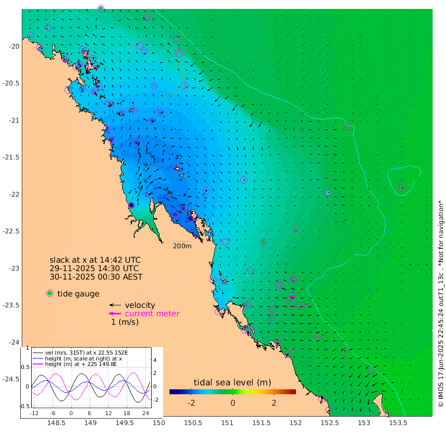 9cm/s 135T +10cm/s rms + 2cm/s 5T. Brampton I 18m 2cm/s -102T +9cm/s rms + 6cm/s 66T. Wigton I 38m 13cm/s -153T +7cm/s rms + 8cm/s 141T. Tern I 47m 10cm/s -93T +7cm/s rms + 12cm/s 54T. N Bugatti Rf 64m 8cm/s -27T +3cm/s rms + 13cm/s 178T. W Bugatti Rf 70m 8cm/s -91T +3cm/s rms + 3cm/s -130T. Creal Rf 69m 32cm/s -65T +7cm/s rms + 4cm/s 2T. North Rf 62m 22cm/s -50T +9cm/s rms + 2cm/s -56T. Cape Capricorn 26m 11cm/s -80T +5cm/s rms + 3cm/s 166T. L Musgrave I 42m 16cm/s -71T +9cm/s rms + 1cm/s -142T. Round Hill Hd 26m 3cm/s -126T +41cm/s rms + 48cm/s 116T. GBRELR 305m 3cm/s -65T +7cm/s rms + 6cm/s 123T. GBRCCH 92m 37cm/s -93T +8cm/s rms + 3cm/s -33T. GBRHIN 45m 26cm/s -89T +4cm/s rms + 2cm/s 41T. GBRHIS 46m 23cm/s -99T +16cm/s rms + 4cm/s -22T. GBROTE 59m -121cm Bell Cay -95cm Holbourne I -170cm Tern I -99cm Bugatti Rf -126cm Creal Rf -81cm White Tip I -57cm North Rf -73cm Rundle I -30cm L Musgrave I -23cm Saumarez Reef -82cm Kennedy Reef -70cm Unnamed Reef No. 2 -97cm Abbot Point -104cm Bowen -115cm Tideway Reef -117cm Hayman Island -145cm Square Reef -112cm Double Bay -142cm Molle Island -133cm Cid Harbour -112cm Hook Island -119cm Border Island -126cm Haslewood Island -130cm Shute Harbour -149cm Thomas Island -155cm Credlin Reef -165cm East Repulse Island -160cm Blacksmith Island -169cm Laguna Quays -164cm Carlisle Island (Off) -176cm St. Bees Island -165cm Scawfell Island -181cm Penrith Island -189cm Mackay Outer Harbour -199cm Hay Point -194cm Prudhoe Island -186cm Middle Island (Percy Isles) -107cm Gannet Cay -33cm Elusive Reef -239cm Mcewin Islet -200cm Mumford Island -215cm Osborn Island -217cm Marquis Island -197cm Reef Point -147cm High Peak Island -128cm Port Clinton -116cm Peaked Island -50cm Karamea Bank -86cm Johnson Patch - NW -105cm Rosslyn Bay -104cm Middle Island (Keppel Isles) -122cm Port Alma -51cm Heron Island -49cm One Tree Islet -55cm Polmaise Reef -67cm Tryon Island -56cm Rock Cod Shoal -73cm Gatcombe Head -87cm Gladstone -77cm South Trees (Storm Surge) -43cm Clews Point -38cm Round Hill Head -22cm Lady Elliot Island -22cm Breaksea Spit -39cm Bundaberg (Burnett Heads) -41cm Elliot Heads -18cm Waddy Point (Fraser Island)