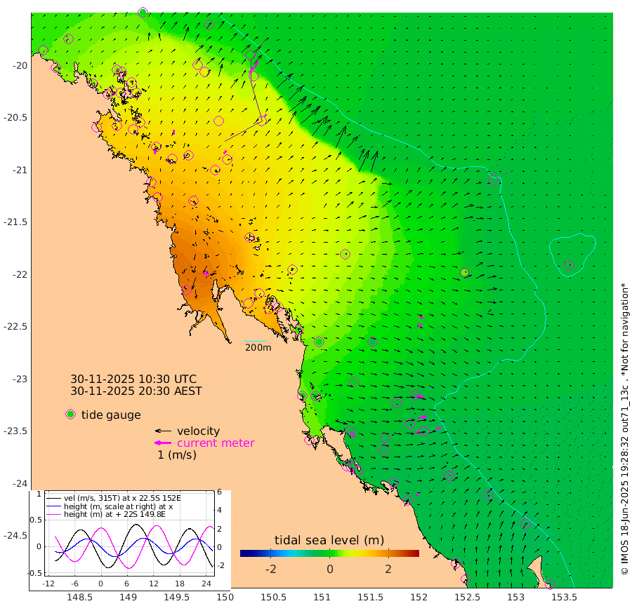 26cm/s -2T +10cm/s rms + 2cm/s 5T. Brampton I 18m 26cm/s 0T +9cm/s rms + 6cm/s 66T. Wigton I 38m 23cm/s 35T +7cm/s rms + 8cm/s 141T. Tern I 47m 43cm/s 25T +7cm/s rms + 12cm/s 54T. N Bugatti Rf 64m 43cm/s 37T +3cm/s rms + 13cm/s 178T. W Bugatti Rf 70m 22cm/s 38T +3cm/s rms + 3cm/s -130T. Creal Rf 69m 52cm/s 106T +7cm/s rms + 4cm/s 2T. North Rf 62m 42cm/s 140T +9cm/s rms + 2cm/s -56T. Cape Capricorn 26m 16cm/s 85T +5cm/s rms + 3cm/s 166T. L Musgrave I 42m 17cm/s 102T +9cm/s rms + 1cm/s -142T. Round Hill Hd 26m 6cm/s 81T +41cm/s rms + 48cm/s 116T. GBRELR 305m 28cm/s 113T +7cm/s rms + 6cm/s 123T. GBRCCH 92m 56cm/s 75T +8cm/s rms + 3cm/s -33T. GBRHIN 45m 35cm/s 89T +4cm/s rms + 2cm/s 41T. GBRHIS 46m 28cm/s 70T +16cm/s rms + 4cm/s -22T. GBROTE 59m 46cm Bell Cay 33cm Holbourne I 111cm Tern I 39cm Bugatti Rf 71cm Creal Rf 15cm White Tip I -30cm North Rf -30cm Rundle I -42cm L Musgrave I -21cm Saumarez Reef 11cm Kennedy Reef -2cm Unnamed Reef No. 2 32cm Abbot Point 42cm Bowen 63cm Tideway Reef 46cm Hayman Island 92cm Square Reef 42cm Double Bay 70cm Molle Island 78cm Cid Harbour 51cm Hook Island 77cm Border Island 82cm Haslewood Island 76cm Shute Harbour 102cm Thomas Island 98cm Credlin Reef 112cm East Repulse Island 112cm Blacksmith Island 130cm Laguna Quays 112cm Carlisle Island (Off) 117cm St. Bees Island 115cm Scawfell Island 116cm Penrith Island 140cm Mackay Outer Harbour 147cm Hay Point 144cm Prudhoe Island 103cm Middle Island (Percy Isles) 33cm Gannet Cay -31cm Elusive Reef 211cm Mcewin Islet 104cm Mumford Island 129cm Osborn Island 130cm Marquis Island 111cm Reef Point 67cm High Peak Island 26cm Port Clinton 17cm Peaked Island -39cm Karamea Bank -17cm Johnson Patch - NW -5cm Rosslyn Bay -7cm Middle Island (Keppel Isles) 8cm Port Alma -38cm Heron Island -45cm One Tree Islet -38cm Polmaise Reef -32cm Tryon Island -41cm Rock Cod Shoal -24cm Gatcombe Head -13cm Gladstone -24cm South Trees (Storm Surge) -48cm Clews Point -43cm Round Hill Head -46cm Lady Elliot Island -54cm Breaksea Spit -44cm Bundaberg (Burnett Heads) -44cm Elliot Heads -41cm Waddy Point (Fraser Island)