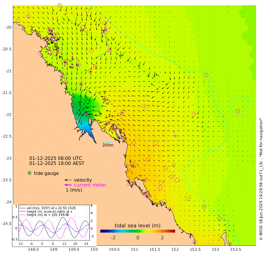 28cm/s 170T +10cm/s rms + 2cm/s 5T. Brampton I 18m 38cm/s 169T +9cm/s rms + 6cm/s 66T. Wigton I 38m 9cm/s -175T +7cm/s rms + 8cm/s 141T. Tern I 47m 42cm/s -168T +7cm/s rms + 12cm/s 54T. N Bugatti Rf 64m 52cm/s -153T +3cm/s rms + 13cm/s 178T. W Bugatti Rf 70m 22cm/s 174T +3cm/s rms + 3cm/s -130T. Creal Rf 69m 10cm/s -105T +7cm/s rms + 4cm/s 2T. North Rf 62m 17cm/s -17T +9cm/s rms + 2cm/s -56T. Cape Capricorn 26m 2cm/s 141T +5cm/s rms + 3cm/s 166T. L Musgrave I 42m 4cm/s 97T +9cm/s rms + 1cm/s -142T. Round Hill Hd 26m 3cm/s 172T +41cm/s rms + 48cm/s 116T. GBRELR 305m 19cm/s -75T +7cm/s rms + 6cm/s 123T. GBRCCH 92m 12cm/s -151T +8cm/s rms + 3cm/s -33T. GBRHIN 45m 2cm/s -172T +4cm/s rms + 2cm/s 41T. GBRHIS 46m 12cm/s 175T +16cm/s rms + 4cm/s -22T. GBROTE 59m 106cm Bell Cay 78cm Holbourne I 103cm Tern I 73cm Bugatti Rf 81cm Creal Rf 69cm White Tip I 90cm North Rf 120cm Rundle I 62cm L Musgrave I 52cm Saumarez Reef 73cm Kennedy Reef 74cm Unnamed Reef No. 2 82cm Abbot Point 81cm Bowen 72cm Tideway Reef 85cm Hayman Island 85cm Square Reef 84cm Double Bay 88cm Molle Island 83cm Cid Harbour 76cm Hook Island 71cm Border Island 79cm Haslewood Island 81cm Shute Harbour 76cm Thomas Island 95cm Credlin Reef 92cm East Repulse Island 81cm Blacksmith Island 78cm Laguna Quays 100cm Carlisle Island (Off) 95cm St. Bees Island 91cm Scawfell Island 111cm Penrith Island 96cm Mackay Outer Harbour 104cm Hay Point 104cm Prudhoe Island 129cm Middle Island (Percy Isles) 101cm Gannet Cay 49cm Elusive Reef 83cm Mcewin Islet 152cm Mumford Island 149cm Osborn Island 155cm Marquis Island 144cm Reef Point 125cm High Peak Island 139cm Port Clinton 137cm Peaked Island 93cm Karamea Bank 114cm Johnson Patch - NW 142cm Rosslyn Bay 145cm Middle Island (Keppel Isles) 158cm Port Alma 90cm Heron Island 89cm One Tree Islet 98cm Polmaise Reef 91cm Tryon Island 107cm Rock Cod Shoal 115cm Gatcombe Head 128cm Gladstone 124cm South Trees (Storm Surge) 90cm Clews Point 81cm Round Hill Head 57cm Lady Elliot Island 49cm Breaksea Spit 88cm Bundaberg (Burnett Heads) 94cm Elliot Heads 37cm Waddy Point (Fraser Island)