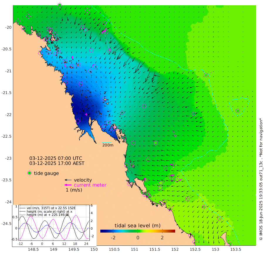 39cm/s 161T +10cm/s rms + 2cm/s 5T. Brampton I 18m 36cm/s 175T +9cm/s rms + 6cm/s 66T. Wigton I 38m 30cm/s -156T +7cm/s rms + 8cm/s 141T. Tern I 47m 56cm/s -154T +7cm/s rms + 12cm/s 54T. N Bugatti Rf 64m 53cm/s -145T +3cm/s rms + 13cm/s 178T. W Bugatti Rf 70m 29cm/s -152T +3cm/s rms + 3cm/s -130T. Creal Rf 69m 50cm/s -74T +7cm/s rms + 4cm/s 2T. North Rf 62m 44cm/s -42T +9cm/s rms + 2cm/s -56T. Cape Capricorn 26m 17cm/s -90T +5cm/s rms + 3cm/s 166T. L Musgrave I 42m 18cm/s -77T +9cm/s rms + 1cm/s -142T. Round Hill Hd 26m 5cm/s -144T +41cm/s rms + 48cm/s 116T. GBRELR 305m 25cm/s -78T +7cm/s rms + 6cm/s 123T. GBRCCH 92m 62cm/s -99T +8cm/s rms + 3cm/s -33T. GBRHIN 45m 40cm/s -94T +4cm/s rms + 2cm/s 41T. GBRHIS 46m 37cm/s -115T +16cm/s rms + 4cm/s -22T. GBROTE 59m -63cm Bell Cay -26cm Holbourne I -133cm Tern I -44cm Bugatti Rf -83cm Creal Rf -16cm White Tip I 18cm North Rf 21cm Rundle I 31cm L Musgrave I 26cm Saumarez Reef -6cm Kennedy Reef 5cm Unnamed Reef No. 2 -23cm Abbot Point -36cm Bowen -67cm Tideway Reef -50cm Hayman Island -94cm Square Reef -42cm Double Bay -68cm Molle Island -85cm Cid Harbour -54cm Hook Island -82cm Border Island -87cm Haslewood Island -82cm Shute Harbour -121cm Thomas Island -117cm Credlin Reef -137cm East Repulse Island -135cm Blacksmith Island -151cm Laguna Quays -131cm Carlisle Island (Off) -150cm St. Bees Island -139cm Scawfell Island -137cm Penrith Island -171cm Mackay Outer Harbour -181cm Hay Point -170cm Prudhoe Island -131cm Middle Island (Percy Isles) -50cm Gannet Cay 24cm Elusive Reef -284cm Mcewin Islet -125cm Mumford Island -166cm Osborn Island -174cm Marquis Island -147cm Reef Point -88cm High Peak Island -42cm Port Clinton -26cm Peaked Island 28cm Karamea Bank 3cm Johnson Patch - NW -9cm Rosslyn Bay -5cm Middle Island (Keppel Isles) -22cm Port Alma 27cm Heron Island 34cm One Tree Islet 28cm Polmaise Reef 9cm Tryon Island 30cm Rock Cod Shoal 15cm Gatcombe Head 1cm Gladstone 14cm South Trees (Storm Surge) 39cm Clews Point 32cm Round Hill Head 33cm Lady Elliot Island 33cm Breaksea Spit 38cm Bundaberg (Burnett Heads) 40cm Elliot Heads 22cm Waddy Point (Fraser Island)