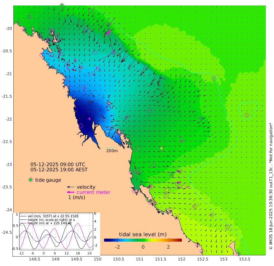 46cm/s 159T +10cm/s rms + 2cm/s 5T. Brampton I 18m 45cm/s 171T +9cm/s rms + 6cm/s 66T. Wigton I 38m 31cm/s -160T +7cm/s rms + 8cm/s 141T. Tern I 47m 62cm/s -157T +7cm/s rms + 12cm/s 54T. N Bugatti Rf 64m 64cm/s -147T +3cm/s rms + 13cm/s 178T. W Bugatti Rf 70m 30cm/s -161T +3cm/s rms + 3cm/s -130T. Creal Rf 69m 48cm/s -73T +7cm/s rms + 4cm/s 2T. North Rf 62m 44cm/s -39T +9cm/s rms + 2cm/s -56T. Cape Capricorn 26m 18cm/s -88T +5cm/s rms + 3cm/s 166T. L Musgrave I 42m 17cm/s -75T +9cm/s rms + 1cm/s -142T. Round Hill Hd 26m 7cm/s -161T +41cm/s rms + 48cm/s 116T. GBRELR 305m 25cm/s -81T +7cm/s rms + 6cm/s 123T. GBRCCH 92m 61cm/s -102T +8cm/s rms + 3cm/s -33T. GBRHIN 45m 39cm/s -94T +4cm/s rms + 2cm/s 41T. GBRHIS 46m 38cm/s -123T +16cm/s rms + 4cm/s -22T. GBROTE 59m -44cm Bell Cay -18cm Holbourne I -110cm Tern I -37cm Bugatti Rf -69cm Creal Rf -13cm White Tip I 25cm North Rf 36cm Rundle I 32cm L Musgrave I 32cm Saumarez Reef 2cm Kennedy Reef 7cm Unnamed Reef No. 2 -16cm Abbot Point -29cm Bowen -59cm Tideway Reef -44cm Hayman Island -80cm Square Reef -38cm Double Bay -68cm Molle Island -72cm Cid Harbour -49cm Hook Island -71cm Border Island -76cm Haslewood Island -71cm Shute Harbour -106cm Thomas Island -101cm Credlin Reef -123cm East Repulse Island -116cm Blacksmith Island -135cm Laguna Quays -116cm Carlisle Island (Off) -128cm St. Bees Island -118cm Scawfell Island -120cm Penrith Island -151cm Mackay Outer Harbour -158cm Hay Point -144cm Prudhoe Island -103cm Middle Island (Percy Isles) -36cm Gannet Cay 19cm Elusive Reef -264cm Mcewin Islet -88cm Mumford Island -131cm Osborn Island -139cm Marquis Island -115cm Reef Point -65cm High Peak Island -20cm Port Clinton 2cm Peaked Island 34cm Karamea Bank 18cm Johnson Patch - NW 13cm Rosslyn Bay 18cm Middle Island (Keppel Isles) 5cm Port Alma 33cm Heron Island 41cm One Tree Islet 40cm Polmaise Reef 16cm Tryon Island 37cm Rock Cod Shoal 28cm Gatcombe Head 20cm Gladstone 31cm South Trees (Storm Surge) 48cm Clews Point 38cm Round Hill Head 33cm Lady Elliot Island 30cm Breaksea Spit 46cm Bundaberg (Burnett Heads) 50cm Elliot Heads 17cm Waddy Point (Fraser Island)