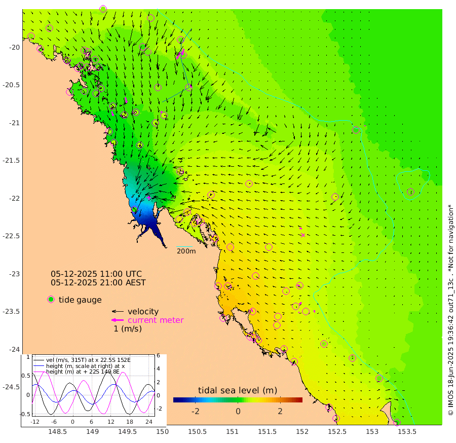 39cm/s 162T +10cm/s rms + 2cm/s 5T. Brampton I 18m 49cm/s 167T +9cm/s rms + 6cm/s 66T. Wigton I 38m 15cm/s -177T +7cm/s rms + 8cm/s 141T. Tern I 47m 53cm/s -164T +7cm/s rms + 12cm/s 54T. N Bugatti Rf 64m 61cm/s -154T +3cm/s rms + 13cm/s 178T. W Bugatti Rf 70m 23cm/s 173T +3cm/s rms + 3cm/s -130T. Creal Rf 69m 18cm/s -75T +7cm/s rms + 4cm/s 2T. North Rf 62m 25cm/s -24T +9cm/s rms + 2cm/s -56T. Cape Capricorn 26m 5cm/s -69T +5cm/s rms + 3cm/s 166T. L Musgrave I 42m 2cm/s -25T +9cm/s rms + 1cm/s -142T. Round Hill Hd 26m 6cm/s 169T +41cm/s rms + 48cm/s 116T. GBRELR 305m 20cm/s -77T +7cm/s rms + 6cm/s 123T. GBRCCH 92m 23cm/s -130T +8cm/s rms + 3cm/s -33T. GBRHIN 45m 7cm/s -108T +4cm/s rms + 2cm/s 41T. GBRHIS 46m 18cm/s -174T +16cm/s rms + 4cm/s -22T. GBROTE 59m 77cm Bell Cay 42cm Holbourne I 62cm Tern I 34cm Bugatti Rf 43cm Creal Rf 31cm White Tip I 69cm North Rf 103cm Rundle I 46cm L Musgrave I 37cm Saumarez Reef 41cm Kennedy Reef 39cm Unnamed Reef No. 2 39cm Abbot Point 37cm Bowen 26cm Tideway Reef 36cm Hayman Island 33cm Square Reef 48cm Double Bay 22cm Molle Island 34cm Cid Harbour 34cm Hook Island 21cm Border Island 30cm Haslewood Island 34cm Shute Harbour 31cm Thomas Island 43cm Credlin Reef 36cm East Repulse Island 32cm Blacksmith Island 26cm Laguna Quays 45cm Carlisle Island (Off) 54cm St. Bees Island 47cm Scawfell Island 54cm Penrith Island 45cm Mackay Outer Harbour 54cm Hay Point 64cm Prudhoe Island 98cm Middle Island (Percy Isles) 75cm Gannet Cay 20cm Elusive Reef 25cm Mcewin Islet 115cm Mumford Island 100cm Osborn Island 110cm Marquis Island 100cm Reef Point 93cm High Peak Island 119cm Port Clinton 123cm Peaked Island 75cm Karamea Bank 97cm Johnson Patch - NW 123cm Rosslyn Bay 126cm Middle Island (Keppel Isles) 139cm Port Alma 70cm Heron Island 71cm One Tree Islet 85cm Polmaise Reef 67cm Tryon Island 85cm Rock Cod Shoal 97cm Gatcombe Head 113cm Gladstone 110cm South Trees (Storm Surge) 76cm Clews Point 67cm Round Hill Head 42cm Lady Elliot Island 31cm Breaksea Spit 77cm Bundaberg (Burnett Heads) 84cm Elliot Heads 19cm Waddy Point (Fraser Island)