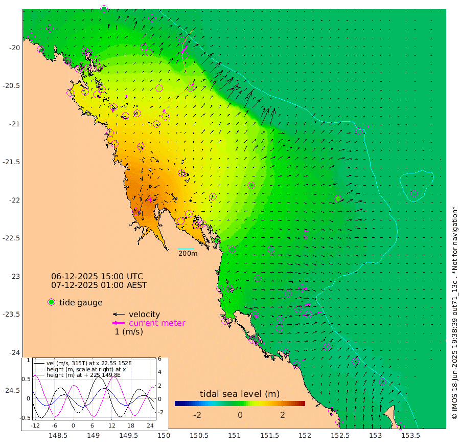 24cm/s -10T +10cm/s rms + 2cm/s 5T. Brampton I 18m 23cm/s -1T +9cm/s rms + 6cm/s 66T. Wigton I 38m 25cm/s 36T +7cm/s rms + 8cm/s 141T. Tern I 47m 35cm/s 21T +7cm/s rms + 12cm/s 54T. N Bugatti Rf 64m 43cm/s 40T +3cm/s rms + 13cm/s 178T. W Bugatti Rf 70m 24cm/s 34T +3cm/s rms + 3cm/s -130T. Creal Rf 69m 39cm/s 98T +7cm/s rms + 4cm/s 2T. North Rf 62m 34cm/s 138T +9cm/s rms + 2cm/s -56T. Cape Capricorn 26m 14cm/s 52T +5cm/s rms + 3cm/s 166T. L Musgrave I 42m 12cm/s 83T +9cm/s rms + 1cm/s -142T. Round Hill Hd 26m 6cm/s 74T +41cm/s rms + 48cm/s 116T. GBRELR 305m 27cm/s 104T +7cm/s rms + 6cm/s 123T. GBRCCH 92m 51cm/s 78T +8cm/s rms + 3cm/s -33T. GBRHIN 45m 36cm/s 89T +4cm/s rms + 2cm/s 41T. GBRHIS 46m 35cm/s 77T +16cm/s rms + 4cm/s -22T. GBROTE 59m 25cm Bell Cay -20cm Holbourne I 80cm Tern I -5cm Bugatti Rf 32cm Creal Rf -31cm White Tip I -51cm North Rf -47cm Rundle I -62cm L Musgrave I -65cm Saumarez Reef -38cm Kennedy Reef -48cm Unnamed Reef No. 2 -23cm Abbot Point -11cm Bowen 11cm Tideway Reef 3cm Hayman Island 25cm Square Reef 6cm Double Bay 12cm Molle Island 30cm Cid Harbour 6cm Hook Island 22cm Border Island 38cm Haslewood Island 30cm Shute Harbour 65cm Thomas Island 56cm Credlin Reef 82cm East Repulse Island 76cm Blacksmith Island 93cm Laguna Quays 79cm Carlisle Island (Off) 97cm St. Bees Island 88cm Scawfell Island 86cm Penrith Island 115cm Mackay Outer Harbour 125cm Hay Point 114cm Prudhoe Island 89cm Middle Island (Percy Isles) 25cm Gannet Cay -65cm Elusive Reef 234cm Mcewin Islet 78cm Mumford Island 117cm Osborn Island 131cm Marquis Island 106cm Reef Point 55cm High Peak Island 15cm Port Clinton -10cm Peaked Island -57cm Karamea Bank -35cm Johnson Patch - NW -18cm Rosslyn Bay -23cm Middle Island (Keppel Isles) -2cm Port Alma -57cm Heron Island -73cm One Tree Islet -57cm Polmaise Reef -50cm Tryon Island -56cm Rock Cod Shoal -35cm Gatcombe Head -24cm Gladstone -35cm South Trees (Storm Surge) -68cm Clews Point -60cm Round Hill Head -65cm Lady Elliot Island -69cm Breaksea Spit -61cm Bundaberg (Burnett Heads) -61cm Elliot Heads -56cm Waddy Point (Fraser Island)