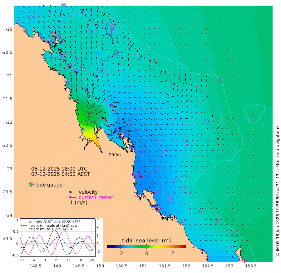 28cm/s -8T +10cm/s rms + 2cm/s 5T. Brampton I 18m 38cm/s -15T +9cm/s rms + 6cm/s 66T. Wigton I 38m 8cm/s 13T +7cm/s rms + 8cm/s 141T. Tern I 47m 34cm/s 3T +7cm/s rms + 12cm/s 54T. N Bugatti Rf 64m 50cm/s 28T +3cm/s rms + 13cm/s 178T. W Bugatti Rf 70m 20cm/s -6T +3cm/s rms + 3cm/s -130T. Creal Rf 69m 9cm/s -13T +7cm/s rms + 4cm/s 2T. North Rf 62m 11cm/s 172T +9cm/s rms + 2cm/s -56T. Cape Capricorn 26m 14cm/s -62T +5cm/s rms + 3cm/s 166T. L Musgrave I 42m 12cm/s -53T +9cm/s rms + 1cm/s -142T. Round Hill Hd 26m 4cm/s -15T +41cm/s rms + 48cm/s 116T. GBRELR 305m 23cm/s 97T +7cm/s rms + 6cm/s 123T. GBRCCH 92m 6cm/s 15T +8cm/s rms + 3cm/s -33T. GBRHIN 45m 5cm/s -39T +4cm/s rms + 2cm/s 41T. GBRHIS 46m 19cm/s 1T +16cm/s rms + 4cm/s -22T. GBROTE 59m -145cm Bell Cay -124cm Holbourne I -153cm Tern I -113cm Bugatti Rf -125cm Creal Rf -107cm White Tip I -121cm North Rf -153cm Rundle I -89cm L Musgrave I -88cm Saumarez Reef -118cm Kennedy Reef -113cm Unnamed Reef No. 2 -120cm Abbot Point -121cm Bowen -118cm Tideway Reef -119cm Hayman Island -138cm Square Reef -133cm Double Bay -128cm Molle Island -123cm Cid Harbour -123cm Hook Island -113cm Border Island -116cm Haslewood Island -124cm Shute Harbour -123cm Thomas Island -142cm Credlin Reef -132cm East Repulse Island -126cm Blacksmith Island -124cm Laguna Quays -143cm Carlisle Island (Off) -150cm St. Bees Island -130cm Scawfell Island -149cm Penrith Island -143cm Mackay Outer Harbour -152cm Hay Point -161cm Prudhoe Island -188cm Middle Island (Percy Isles) -134cm Gannet Cay -81cm Elusive Reef -132cm Mcewin Islet -198cm Mumford Island -188cm Osborn Island -197cm Marquis Island -183cm Reef Point -168cm High Peak Island -187cm Port Clinton -187cm Peaked Island -125cm Karamea Bank -159cm Johnson Patch - NW -183cm Rosslyn Bay -186cm Middle Island (Keppel Isles) -203cm Port Alma -121cm Heron Island -126cm One Tree Islet -134cm Polmaise Reef -127cm Tryon Island -137cm Rock Cod Shoal -145cm Gatcombe Head -168cm Gladstone -161cm South Trees (Storm Surge) -120cm Clews Point -111cm Round Hill Head -84cm Lady Elliot Island -77cm Breaksea Spit -122cm Bundaberg (Burnett Heads) -127cm Elliot Heads -57cm Waddy Point (Fraser Island)