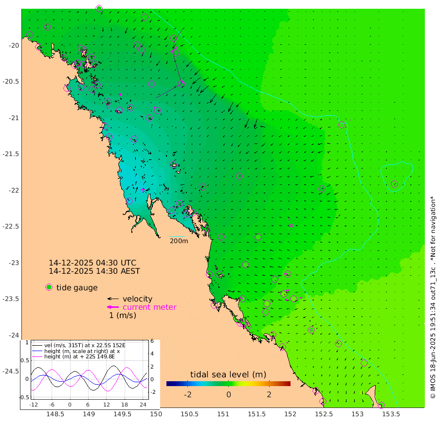 18cm/s 165T +10cm/s rms + 2cm/s 5T. Brampton I 18m 19cm/s -179T +9cm/s rms + 6cm/s 66T. Wigton I 38m 15cm/s -154T +7cm/s rms + 8cm/s 141T. Tern I 47m 27cm/s -150T +7cm/s rms + 12cm/s 54T. N Bugatti Rf 64m 21cm/s -135T +3cm/s rms + 13cm/s 178T. W Bugatti Rf 70m 15cm/s -147T +3cm/s rms + 3cm/s -130T. Creal Rf 69m 28cm/s -77T +7cm/s rms + 4cm/s 2T. North Rf 62m 24cm/s -45T +9cm/s rms + 2cm/s -56T. Cape Capricorn 26m 4cm/s -118T +5cm/s rms + 3cm/s 166T. L Musgrave I 42m 10cm/s -84T +9cm/s rms + 1cm/s -142T. Round Hill Hd 26m 3cm/s -108T +41cm/s rms + 48cm/s 116T. GBRELR 305m 13cm/s -75T +7cm/s rms + 6cm/s 123T. GBRCCH 92m 30cm/s -98T +8cm/s rms + 3cm/s -33T. GBRHIN 45m 20cm/s -93T +4cm/s rms + 2cm/s 41T. GBRHIS 46m 17cm/s -106T +16cm/s rms + 4cm/s -22T. GBROTE 59m -26cm Bell Cay -17cm Holbourne I -66cm Tern I -18cm Bugatti Rf -39cm Creal Rf -3cm White Tip I 20cm North Rf 20cm Rundle I 28cm L Musgrave I 19cm Saumarez Reef 0cm Kennedy Reef 2cm Unnamed Reef No. 2 -17cm Abbot Point -23cm Bowen -35cm Tideway Reef -24cm Hayman Island -45cm Square Reef -37cm Double Bay -25cm Molle Island -38cm Cid Harbour -33cm Hook Island -37cm Border Island -43cm Haslewood Island -44cm Shute Harbour -62cm Thomas Island -60cm Credlin Reef -76cm East Repulse Island -60cm Blacksmith Island -77cm Laguna Quays -71cm Carlisle Island (Off) -89cm St. Bees Island -70cm Scawfell Island -59cm Penrith Island -85cm Mackay Outer Harbour -90cm Hay Point -93cm Prudhoe Island -55cm Middle Island (Percy Isles) -14cm Gannet Cay 20cm Elusive Reef -130cm Mcewin Islet -51cm Mumford Island -66cm Osborn Island -76cm Marquis Island -61cm Reef Point -36cm High Peak Island -17cm Port Clinton -15cm Peaked Island 22cm Karamea Bank 19cm Johnson Patch - NW 6cm Rosslyn Bay 3cm Middle Island (Keppel Isles) 1cm Port Alma 29cm Heron Island 33cm One Tree Islet 29cm Polmaise Reef 24cm Tryon Island 24cm Rock Cod Shoal 22cm Gatcombe Head 15cm Gladstone 21cm South Trees (Storm Surge) 35cm Clews Point 31cm Round Hill Head 29cm Lady Elliot Island 33cm Breaksea Spit 34cm Bundaberg (Burnett Heads) 39cm Elliot Heads 25cm Waddy Point (Fraser Island)