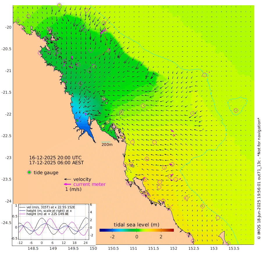 28cm/s -174T +10cm/s rms + 2cm/s 5T. Brampton I 18m 38cm/s 174T +9cm/s rms + 6cm/s 66T. Wigton I 38m 18cm/s -138T +7cm/s rms + 8cm/s 141T. Tern I 47m 49cm/s -165T +7cm/s rms + 12cm/s 54T. N Bugatti Rf 64m 66cm/s -145T +3cm/s rms + 13cm/s 178T. W Bugatti Rf 70m 23cm/s -164T +3cm/s rms + 3cm/s -130T. Creal Rf 69m 40cm/s -82T +7cm/s rms + 4cm/s 2T. North Rf 62m 38cm/s -29T +9cm/s rms + 2cm/s -56T. Cape Capricorn 26m 13cm/s -110T +5cm/s rms + 3cm/s 166T. L Musgrave I 42m 8cm/s -72T +9cm/s rms + 1cm/s -142T. Round Hill Hd 26m 6cm/s -89T +41cm/s rms + 48cm/s 116T. GBRELR 305m 36cm/s -66T +7cm/s rms + 6cm/s 123T. GBRCCH 92m 40cm/s -114T +8cm/s rms + 3cm/s -33T. GBRHIN 45m 22cm/s -95T +4cm/s rms + 2cm/s 41T. GBRHIS 46m 21cm/s -126T +16cm/s rms + 4cm/s -22T. GBROTE 59m 58cm Bell Cay 38cm Holbourne I 19cm Tern I 34cm Bugatti Rf 24cm Creal Rf 44cm White Tip I 91cm North Rf 111cm Rundle I 79cm L Musgrave I 52cm Saumarez Reef 52cm Kennedy Reef 52cm Unnamed Reef No. 2 35cm Abbot Point 30cm Bowen 16cm Tideway Reef 36cm Hayman Island 17cm Square Reef 25cm Double Bay 14cm Molle Island 16cm Cid Harbour 25cm Hook Island 13cm Border Island 2cm Haslewood Island 15cm Shute Harbour 2cm Thomas Island 16cm Credlin Reef -5cm East Repulse Island 3cm Blacksmith Island -14cm Laguna Quays 0cm Carlisle Island (Off) 6cm St. Bees Island 9cm Scawfell Island 18cm Penrith Island -3cm Mackay Outer Harbour 0cm Hay Point 6cm Prudhoe Island 48cm Middle Island (Percy Isles) 57cm Gannet Cay 57cm Elusive Reef -43cm Mcewin Islet 78cm Mumford Island 55cm Osborn Island 52cm Marquis Island 50cm Reef Point 52cm High Peak Island 91cm Port Clinton 101cm Peaked Island 90cm Karamea Bank 104cm Johnson Patch - NW 110cm Rosslyn Bay 111cm Middle Island (Keppel Isles) 111cm Port Alma 91cm Heron Island 110cm One Tree Islet 104cm Polmaise Reef 96cm Tryon Island 96cm Rock Cod Shoal 98cm Gatcombe Head 103cm Gladstone 105cm South Trees (Storm Surge) 106cm Clews Point 91cm Round Hill Head 76cm Lady Elliot Island 82cm Breaksea Spit 91cm Bundaberg (Burnett Heads) 95cm Elliot Heads 65cm Waddy Point (Fraser Island)