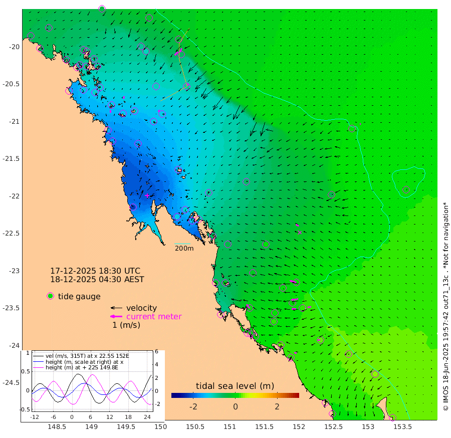 20cm/s -178T +10cm/s rms + 2cm/s 5T. Brampton I 18m 22cm/s -175T +9cm/s rms + 6cm/s 66T. Wigton I 38m 20cm/s -143T +7cm/s rms + 8cm/s 141T. Tern I 47m 35cm/s -151T +7cm/s rms + 12cm/s 54T. N Bugatti Rf 64m 37cm/s -137T +3cm/s rms + 13cm/s 178T. W Bugatti Rf 70m 18cm/s -147T +3cm/s rms + 3cm/s -130T. Creal Rf 69m 56cm/s -74T +7cm/s rms + 4cm/s 2T. North Rf 62m 41cm/s -39T +9cm/s rms + 2cm/s -56T. Cape Capricorn 26m 21cm/s -92T +5cm/s rms + 3cm/s 166T. L Musgrave I 42m 20cm/s -69T +9cm/s rms + 1cm/s -142T. Round Hill Hd 26m 7cm/s -87T +41cm/s rms + 48cm/s 116T. GBRELR 305m 27cm/s -62T +7cm/s rms + 6cm/s 123T. GBRCCH 92m 58cm/s -99T +8cm/s rms + 3cm/s -33T. GBRHIN 45m 36cm/s -91T +4cm/s rms + 2cm/s 41T. GBRHIS 46m 30cm/s -103T +16cm/s rms + 4cm/s -22T. GBROTE 59m -64cm Bell Cay -63cm Holbourne I -129cm Tern I -59cm Bugatti Rf -88cm Creal Rf -37cm White Tip I 13cm North Rf 10cm Rundle I 28cm L Musgrave I 8cm Saumarez Reef -41cm Kennedy Reef -26cm Unnamed Reef No. 2 -56cm Abbot Point -65cm Bowen -85cm Tideway Reef -65cm Hayman Island -109cm Square Reef -84cm Double Bay -98cm Molle Island -87cm Cid Harbour -82cm Hook Island -86cm Border Island -94cm Haslewood Island -95cm Shute Harbour -119cm Thomas Island -112cm Credlin Reef -127cm East Repulse Island -118cm Blacksmith Island -143cm Laguna Quays -128cm Carlisle Island (Off) -134cm St. Bees Island -118cm Scawfell Island -126cm Penrith Island -154cm Mackay Outer Harbour -161cm Hay Point -167cm Prudhoe Island -134cm Middle Island (Percy Isles) -52cm Gannet Cay 10cm Elusive Reef -219cm Mcewin Islet -113cm Mumford Island -127cm Osborn Island -132cm Marquis Island -115cm Reef Point -87cm High Peak Island -60cm Port Clinton -43cm Peaked Island 16cm Karamea Bank -10cm Johnson Patch - NW -20cm Rosslyn Bay -18cm Middle Island (Keppel Isles) -35cm Port Alma 18cm Heron Island 26cm One Tree Islet 17cm Polmaise Reef 13cm Tryon Island 19cm Rock Cod Shoal 2cm Gatcombe Head -10cm Gladstone 1cm South Trees (Storm Surge) 30cm Clews Point 26cm Round Hill Head 31cm Lady Elliot Island 39cm Breaksea Spit 23cm Bundaberg (Burnett Heads) 27cm Elliot Heads 33cm Waddy Point (Fraser Island)