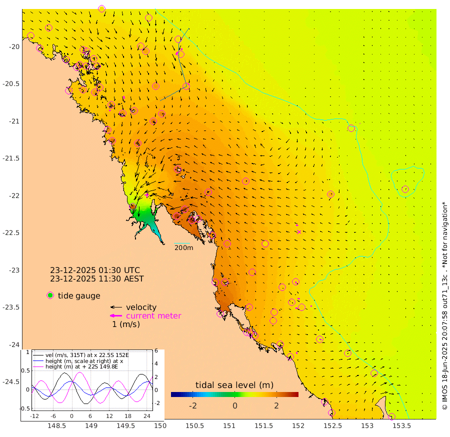 11cm/s -146T +10cm/s rms + 2cm/s 5T. Brampton I 18m 22cm/s 167T +9cm/s rms + 6cm/s 66T. Wigton I 38m 5cm/s 19T +7cm/s rms + 8cm/s 141T. Tern I 47m 15cm/s 164T +7cm/s rms + 12cm/s 54T. N Bugatti Rf 64m 27cm/s -152T +3cm/s rms + 13cm/s 178T. W Bugatti Rf 70m 11cm/s 149T +3cm/s rms + 3cm/s -130T. Creal Rf 69m 13cm/s 154T +7cm/s rms + 4cm/s 2T. North Rf 62m 6cm/s 56T +9cm/s rms + 2cm/s -56T. Cape Capricorn 26m 16cm/s 118T +5cm/s rms + 3cm/s 166T. L Musgrave I 42m 13cm/s 119T +9cm/s rms + 1cm/s -142T. Round Hill Hd 26m 1cm/s -44T +41cm/s rms + 48cm/s 116T. GBRELR 305m 18cm/s -69T +7cm/s rms + 6cm/s 123T. GBRCCH 92m 18cm/s 112T +8cm/s rms + 3cm/s -33T. GBRHIN 45m 14cm/s 93T +4cm/s rms + 2cm/s 41T. GBRHIS 46m 11cm/s 106T +16cm/s rms + 4cm/s -22T. GBROTE 59m 164cm Bell Cay 114cm Holbourne I 188cm Tern I 123cm Bugatti Rf 146cm Creal Rf 108cm White Tip I 124cm North Rf 150cm Rundle I 90cm L Musgrave I 76cm Saumarez Reef 105cm Kennedy Reef 102cm Unnamed Reef No. 2 112cm Abbot Point 118cm Bowen 127cm Tideway Reef 133cm Hayman Island 160cm Square Reef 121cm Double Bay 147cm Molle Island 148cm Cid Harbour 123cm Hook Island 134cm Border Island 137cm Haslewood Island 139cm Shute Harbour 154cm Thomas Island 173cm Credlin Reef 167cm East Repulse Island 172cm Blacksmith Island 165cm Laguna Quays 174cm Carlisle Island (Off) 182cm St. Bees Island 176cm Scawfell Island 200cm Penrith Island 195cm Mackay Outer Harbour 207cm Hay Point 202cm Prudhoe Island 224cm Middle Island (Percy Isles) 153cm Gannet Cay 76cm Elusive Reef 231cm Mcewin Islet 242cm Mumford Island 254cm Osborn Island 261cm Marquis Island 239cm Reef Point 195cm High Peak Island 191cm Port Clinton 184cm Peaked Island 120cm Karamea Bank 164cm Johnson Patch - NW 186cm Rosslyn Bay 186cm Middle Island (Keppel Isles) 208cm Port Alma 123cm Heron Island 126cm One Tree Islet 132cm Polmaise Reef 140cm Tryon Island 133cm Rock Cod Shoal 147cm Gatcombe Head 169cm Gladstone 159cm South Trees (Storm Surge) 117cm Clews Point 111cm Round Hill Head 84cm Lady Elliot Island 83cm Breaksea Spit 113cm Bundaberg (Burnett Heads) 122cm Elliot Heads 68cm Waddy Point (Fraser Island)