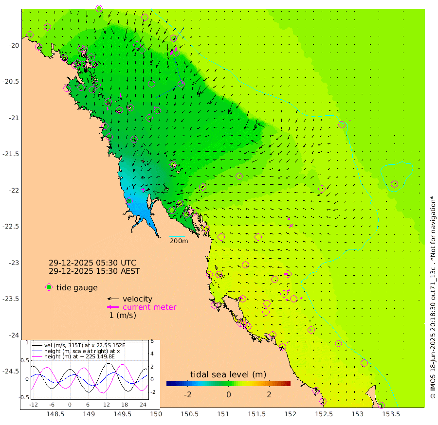 28cm/s 170T +10cm/s rms + 2cm/s 5T. Brampton I 18m 32cm/s 173T +9cm/s rms + 6cm/s 66T. Wigton I 38m 13cm/s -158T +7cm/s rms + 8cm/s 141T. Tern I 47m 41cm/s -162T +7cm/s rms + 12cm/s 54T. N Bugatti Rf 64m 41cm/s -149T +3cm/s rms + 13cm/s 178T. W Bugatti Rf 70m 21cm/s -167T +3cm/s rms + 3cm/s -130T. Creal Rf 69m 23cm/s -82T +7cm/s rms + 4cm/s 2T. North Rf 62m 25cm/s -34T +9cm/s rms + 2cm/s -56T. Cape Capricorn 26m 4cm/s -119T +5cm/s rms + 3cm/s 166T. L Musgrave I 42m 5cm/s -90T +9cm/s rms + 1cm/s -142T. Round Hill Hd 26m 2cm/s -151T +41cm/s rms + 48cm/s 116T. GBRELR 305m 20cm/s -74T +7cm/s rms + 6cm/s 123T. GBRCCH 92m 25cm/s -111T +8cm/s rms + 3cm/s -33T. GBRHIN 45m 14cm/s -98T +4cm/s rms + 2cm/s 41T. GBRHIS 46m 15cm/s -137T +16cm/s rms + 4cm/s -22T. GBROTE 59m 42cm Bell Cay 31cm Holbourne I 12cm Tern I 26cm Bugatti Rf 17cm Creal Rf 33cm White Tip I 64cm North Rf 82cm Rundle I 53cm L Musgrave I 38cm Saumarez Reef 35cm Kennedy Reef 42cm Unnamed Reef No. 2 31cm Abbot Point 27cm Bowen 13cm Tideway Reef 27cm Hayman Island 8cm Square Reef 33cm Double Bay 26cm Molle Island 12cm Cid Harbour 24cm Hook Island 6cm Border Island 12cm Haslewood Island 13cm Shute Harbour -1cm Thomas Island 11cm Credlin Reef 3cm East Repulse Island -4cm Blacksmith Island -10cm Laguna Quays 11cm Carlisle Island (Off) 2cm St. Bees Island 1cm Scawfell Island 16cm Penrith Island -4cm Mackay Outer Harbour -2cm Hay Point -1cm Prudhoe Island 37cm Middle Island (Percy Isles) 48cm Gannet Cay 40cm Elusive Reef -32cm Mcewin Islet 40cm Mumford Island 30cm Osborn Island 35cm Marquis Island 35cm Reef Point 46cm High Peak Island 73cm Port Clinton 68cm Peaked Island 70cm Karamea Bank 76cm Johnson Patch - NW 85cm Rosslyn Bay 85cm Middle Island (Keppel Isles) 91cm Port Alma 70cm Heron Island 68cm One Tree Islet 72cm Polmaise Reef 64cm Tryon Island 80cm Rock Cod Shoal 80cm Gatcombe Head 84cm Gladstone 85cm South Trees (Storm Surge) 71cm Clews Point 66cm Round Hill Head 52cm Lady Elliot Island 48cm Breaksea Spit 73cm Bundaberg (Burnett Heads) 76cm Elliot Heads 36cm Waddy Point (Fraser Island)