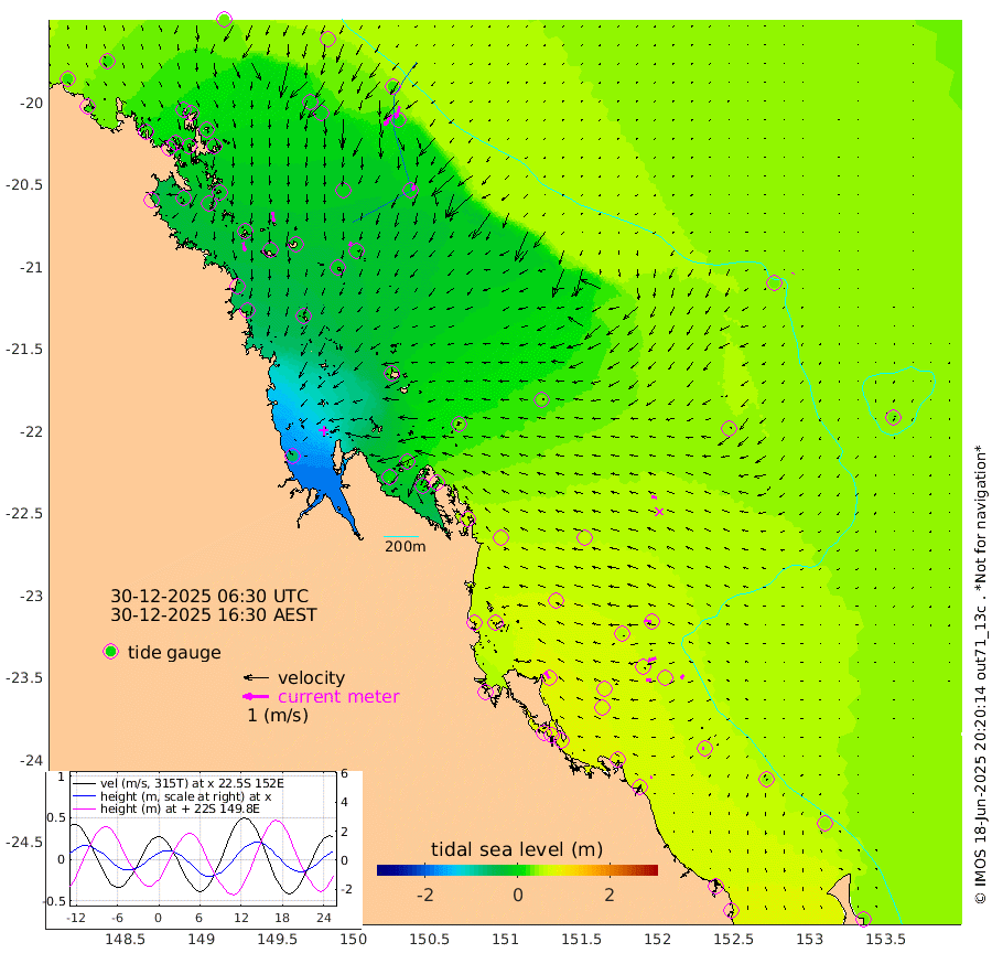 33cm/s 167T +10cm/s rms + 2cm/s 5T. Brampton I 18m 37cm/s 172T +9cm/s rms + 6cm/s 66T. Wigton I 38m 17cm/s -159T +7cm/s rms + 8cm/s 141T. Tern I 47m 48cm/s -161T +7cm/s rms + 12cm/s 54T. N Bugatti Rf 64m 50cm/s -149T +3cm/s rms + 13cm/s 178T. W Bugatti Rf 70m 23cm/s -167T +3cm/s rms + 3cm/s -130T. Creal Rf 69m 27cm/s -79T +7cm/s rms + 4cm/s 2T. North Rf 62m 29cm/s -34T +9cm/s rms + 2cm/s -56T. Cape Capricorn 26m 7cm/s -97T +5cm/s rms + 3cm/s 166T. L Musgrave I 42m 7cm/s -81T +9cm/s rms + 1cm/s -142T. Round Hill Hd 26m 3cm/s -160T +41cm/s rms + 48cm/s 116T. GBRELR 305m 21cm/s -76T +7cm/s rms + 6cm/s 123T. GBRCCH 92m 31cm/s -110T +8cm/s rms + 3cm/s -33T. GBRHIN 45m 18cm/s -97T +4cm/s rms + 2cm/s 41T. GBRHIS 46m 19cm/s -135T +16cm/s rms + 4cm/s -22T. GBROTE 59m 31cm Bell Cay 26cm Holbourne I -3cm Tern I 17cm Bugatti Rf 5cm Creal Rf 26cm White Tip I 58cm North Rf 78cm Rundle I 48cm L Musgrave I 34cm Saumarez Reef 32cm Kennedy Reef 38cm Unnamed Reef No. 2 26cm Abbot Point 21cm Bowen 2cm Tideway Reef 18cm Hayman Island -6cm Square Reef 28cm Double Bay 14cm Molle Island 0cm Cid Harbour 14cm Hook Island -5cm Border Island 0cm Haslewood Island 2cm Shute Harbour -16cm Thomas Island -5cm Credlin Reef -13cm East Repulse Island -20cm Blacksmith Island -27cm Laguna Quays -5cm Carlisle Island (Off) -14cm St. Bees Island -14cm Scawfell Island -3cm Penrith Island -24cm Mackay Outer Harbour -22cm Hay Point -20cm Prudhoe Island 20cm Middle Island (Percy Isles) 38cm Gannet Cay 35cm Elusive Reef -64cm Mcewin Islet 27cm Mumford Island 11cm Osborn Island 15cm Marquis Island 18cm Reef Point 32cm High Peak Island 64cm Port Clinton 62cm Peaked Island 64cm Karamea Bank 67cm Johnson Patch - NW 77cm Rosslyn Bay 78cm Middle Island (Keppel Isles) 83cm Port Alma 63cm Heron Island 63cm One Tree Islet 67cm Polmaise Reef 55cm Tryon Island 74cm Rock Cod Shoal 74cm Gatcombe Head 77cm Gladstone 79cm South Trees (Storm Surge) 67cm Clews Point 60cm Round Hill Head 46cm Lady Elliot Island 42cm Breaksea Spit 68cm Bundaberg (Burnett Heads) 72cm Elliot Heads 30cm Waddy Point (Fraser Island)