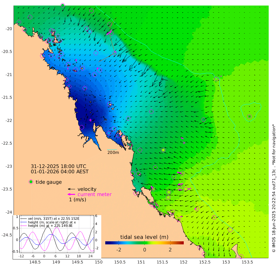 27cm/s -179T +10cm/s rms + 2cm/s 5T. Brampton I 18m 31cm/s -177T +9cm/s rms + 6cm/s 66T. Wigton I 38m 28cm/s -143T +7cm/s rms + 8cm/s 141T. Tern I 47m 50cm/s -153T +7cm/s rms + 12cm/s 54T. N Bugatti Rf 64m 53cm/s -140T +3cm/s rms + 13cm/s 178T. W Bugatti Rf 70m 25cm/s -143T +3cm/s rms + 3cm/s -130T. Creal Rf 69m 70cm/s -74T +7cm/s rms + 4cm/s 2T. North Rf 62m 56cm/s -36T +9cm/s rms + 2cm/s -56T. Cape Capricorn 26m 24cm/s -99T +5cm/s rms + 3cm/s 166T. L Musgrave I 42m 24cm/s -70T +9cm/s rms + 1cm/s -142T. Round Hill Hd 26m 9cm/s -89T +41cm/s rms + 48cm/s 116T. GBRELR 305m 38cm/s -63T +7cm/s rms + 6cm/s 123T. GBRCCH 92m 75cm/s -100T +8cm/s rms + 3cm/s -33T. GBRHIN 45m 47cm/s -91T +4cm/s rms + 2cm/s 41T. GBRHIS 46m 41cm/s -105T +16cm/s rms + 4cm/s -22T. GBROTE 59m -67cm Bell Cay -58cm Holbourne I -151cm Tern I -63cm Bugatti Rf -100cm Creal Rf -35cm White Tip I 30cm North Rf 30cm Rundle I 47cm L Musgrave I 24cm Saumarez Reef -33cm Kennedy Reef -15cm Unnamed Reef No. 2 -59cm Abbot Point -71cm Bowen -94cm Tideway Reef -78cm Hayman Island -127cm Square Reef -82cm Double Bay -114cm Molle Island -116cm Cid Harbour -82cm Hook Island -106cm Border Island -119cm Haslewood Island -112cm Shute Harbour -142cm Thomas Island -136cm Credlin Reef -161cm East Repulse Island -162cm Blacksmith Island -177cm Laguna Quays -158cm Carlisle Island (Off) -179cm St. Bees Island -168cm Scawfell Island -161cm Penrith Island -188cm Mackay Outer Harbour -196cm Hay Point -185cm Prudhoe Island -142cm Middle Island (Percy Isles) -52cm Gannet Cay 29cm Elusive Reef -275cm Mcewin Islet -139cm Mumford Island -171cm Osborn Island -179cm Marquis Island -155cm Reef Point -98cm High Peak Island -43cm Port Clinton -27cm Peaked Island 39cm Karamea Bank 11cm Johnson Patch - NW -5cm Rosslyn Bay -2cm Middle Island (Keppel Isles) -24cm Port Alma 36cm Heron Island 53cm One Tree Islet 40cm Polmaise Reef 26cm Tryon Island 40cm Rock Cod Shoal 18cm Gatcombe Head 5cm Gladstone 19cm South Trees (Storm Surge) 55cm Clews Point 47cm Round Hill Head 52cm Lady Elliot Island 59cm Breaksea Spit 45cm Bundaberg (Burnett Heads) 41cm Elliot Heads 49cm Waddy Point (Fraser Island)