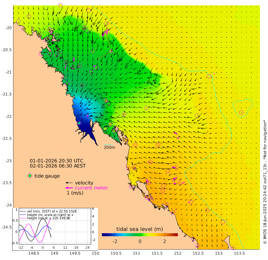 41cm/s -176T +10cm/s rms + 2cm/s 5T. Brampton I 18m 54cm/s 174T +9cm/s rms + 6cm/s 66T. Wigton I 38m 27cm/s -142T +7cm/s rms + 8cm/s 141T. Tern I 47m 71cm/s -164T +7cm/s rms + 12cm/s 54T. N Bugatti Rf 64m 92cm/s -147T +3cm/s rms + 13cm/s 178T. W Bugatti Rf 70m 33cm/s -162T +3cm/s rms + 3cm/s -130T. Creal Rf 69m 60cm/s -81T +7cm/s rms + 4cm/s 2T. North Rf 62m 56cm/s -30T +9cm/s rms + 2cm/s -56T. Cape Capricorn 26m 18cm/s -119T +5cm/s rms + 3cm/s 166T. L Musgrave I 42m 11cm/s -73T +9cm/s rms + 1cm/s -142T. Round Hill Hd 26m 8cm/s -98T +41cm/s rms + 48cm/s 116T. GBRELR 305m 54cm/s -67T +7cm/s rms + 6cm/s 123T. GBRCCH 92m 63cm/s -111T +8cm/s rms + 3cm/s -33T. GBRHIN 45m 36cm/s -95T +4cm/s rms + 2cm/s 41T. GBRHIS 46m 35cm/s -122T +16cm/s rms + 4cm/s -22T. GBROTE 59m 80cm Bell Cay 64cm Holbourne I 23cm Tern I 52cm Bugatti Rf 34cm Creal Rf 69cm White Tip I 135cm North Rf 162cm Rundle I 119cm L Musgrave I 88cm Saumarez Reef 76cm Kennedy Reef 90cm Unnamed Reef No. 2 63cm Abbot Point 54cm Bowen 32cm Tideway Reef 52cm Hayman Island 23cm Square Reef 55cm Double Bay 29cm Molle Island 23cm Cid Harbour 45cm Hook Island 19cm Border Island 11cm Haslewood Island 26cm Shute Harbour 4cm Thomas Island 24cm Credlin Reef 2cm East Repulse Island -10cm Blacksmith Island -22cm Laguna Quays 8cm Carlisle Island (Off) -4cm St. Bees Island -6cm Scawfell Island 12cm Penrith Island -12cm Mackay Outer Harbour -9cm Hay Point 4cm Prudhoe Island 54cm Middle Island (Percy Isles) 78cm Gannet Cay 96cm Elusive Reef -91cm Mcewin Islet 76cm Mumford Island 45cm Osborn Island 45cm Marquis Island 51cm Reef Point 72cm High Peak Island 131cm Port Clinton 145cm Peaked Island 144cm Karamea Bank 145cm Johnson Patch - NW 158cm Rosslyn Bay 165cm Middle Island (Keppel Isles) 157cm Port Alma 136cm Heron Island 157cm One Tree Islet 149cm Polmaise Reef 138cm Tryon Island 155cm Rock Cod Shoal 142cm Gatcombe Head 147cm Gladstone 154cm South Trees (Storm Surge) 151cm Clews Point 135cm Round Hill Head 118cm Lady Elliot Island 120cm Breaksea Spit 136cm Bundaberg (Burnett Heads) 136cm Elliot Heads 97cm Waddy Point (Fraser Island)