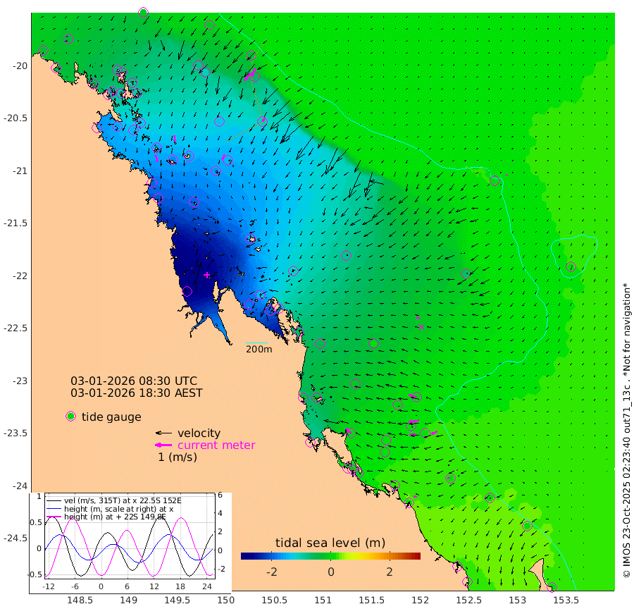 42cm/s 158T +10cm/s rms + 2cm/s 5T. Brampton I 18m 38cm/s 173T +9cm/s rms + 6cm/s 66T. Wigton I 38m 32cm/s -157T +7cm/s rms + 8cm/s 141T. Tern I 47m 56cm/s -155T +7cm/s rms + 12cm/s 54T. N Bugatti Rf 64m 55cm/s -144T +3cm/s rms + 13cm/s 178T. W Bugatti Rf 70m 28cm/s -152T +3cm/s rms + 3cm/s -130T. Creal Rf 69m 48cm/s -71T +7cm/s rms + 4cm/s 2T. North Rf 62m 44cm/s -42T +9cm/s rms + 2cm/s -56T. Cape Capricorn 26m 15cm/s -89T +5cm/s rms + 3cm/s 166T. L Musgrave I 42m 19cm/s -76T +9cm/s rms + 1cm/s -142T. Round Hill Hd 26m 6cm/s -155T +41cm/s rms + 48cm/s 116T. GBRELR 305m 20cm/s -83T +7cm/s rms + 6cm/s 123T. GBRCCH 92m 64cm/s -99T +8cm/s rms + 3cm/s -33T. GBRHIN 45m 41cm/s -93T +4cm/s rms + 2cm/s 41T. GBRHIS 46m 39cm/s -117T +16cm/s rms + 4cm/s -22T. GBROTE 59m -79cm Bell Cay -38cm Holbourne I -148cm Tern I -59cm Bugatti Rf -97cm Creal Rf -31cm White Tip I 1cm North Rf 4cm Rundle I 17cm L Musgrave I 17cm Saumarez Reef -13cm Kennedy Reef -10cm Unnamed Reef No. 2 -37cm Abbot Point -50cm Bowen -82cm Tideway Reef -69cm Hayman Island -111cm Square Reef -64cm Double Bay -92cm Molle Island -98cm Cid Harbour -73cm Hook Island -92cm Border Island -102cm Haslewood Island -98cm Shute Harbour -136cm Thomas Island -135cm Credlin Reef -156cm East Repulse Island -147cm Blacksmith Island -167cm Laguna Quays -152cm Carlisle Island (Off) -169cm St. Bees Island -153cm Scawfell Island -160cm Penrith Island -190cm Mackay Outer Harbour -200cm Hay Point -190cm Prudhoe Island -150cm Middle Island (Percy Isles) -66cm Gannet Cay 9cm Elusive Reef -305cm Mcewin Islet -138cm Mumford Island -179cm Osborn Island -191cm Marquis Island -162cm Reef Point -107cm High Peak Island -62cm Port Clinton -42cm Peaked Island 11cm Karamea Bank -16cm Johnson Patch - NW -26cm Rosslyn Bay -23cm Middle Island (Keppel Isles) -39cm Port Alma 9cm Heron Island 18cm One Tree Islet 14cm Polmaise Reef -8cm Tryon Island 11cm Rock Cod Shoal -2cm Gatcombe Head -14cm Gladstone -1cm South Trees (Storm Surge) 27cm Clews Point 19cm Round Hill Head 18cm Lady Elliot Island 18cm Breaksea Spit 25cm Bundaberg (Burnett Heads) 27cm Elliot Heads 7cm Waddy Point (Fraser Island)